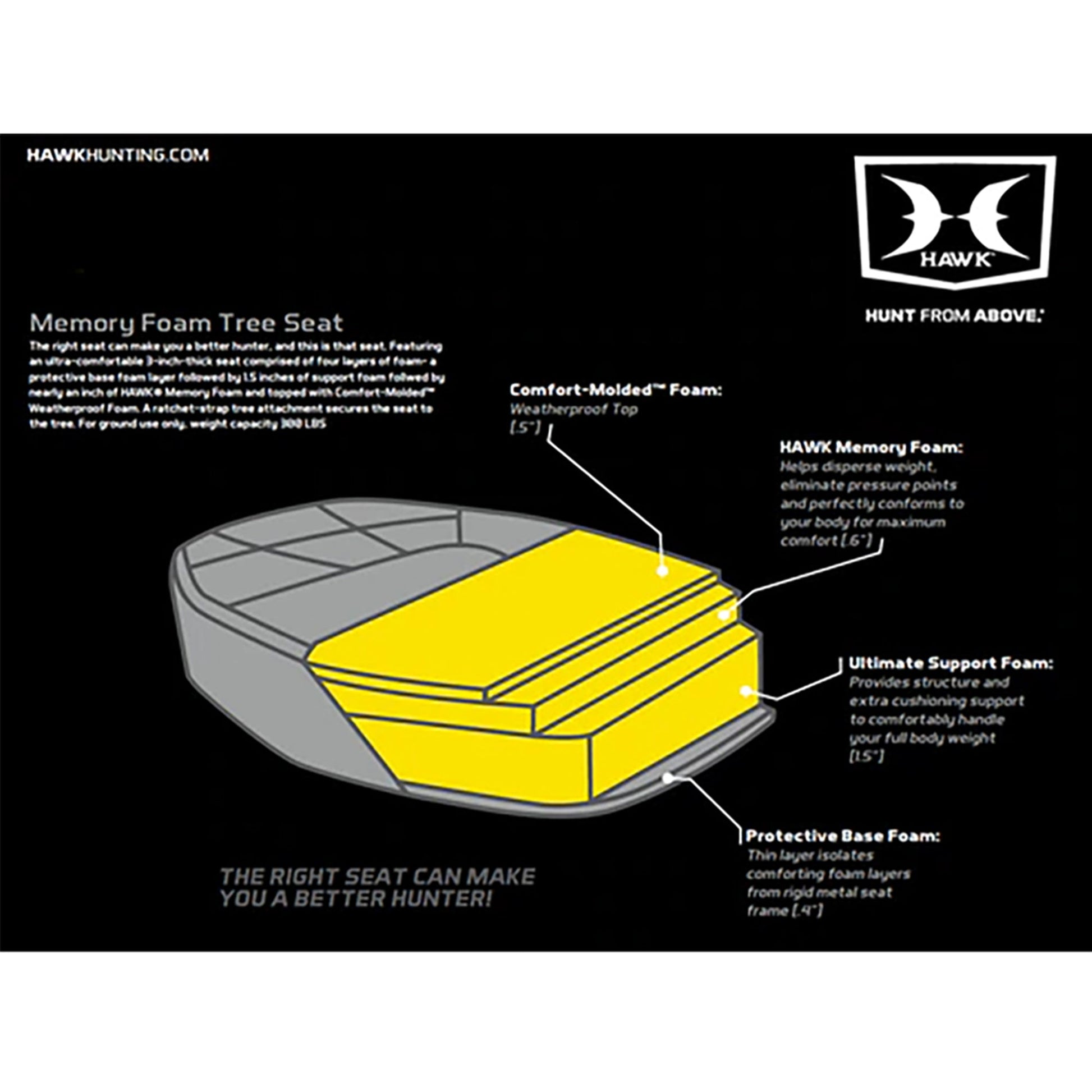 Constructed of durable steel material with a massive 24 x 30-inch platform, this treestand is roomy and tough. From the comfortable, memory foam seat down to the welded contact points, this deer stand is the real deal. Plus, like all Hawk stands, it's tested to TMA standards and comes with a full-body harness. This hunting essential will ensure that you are comfortable and hidden during your next hunting season.