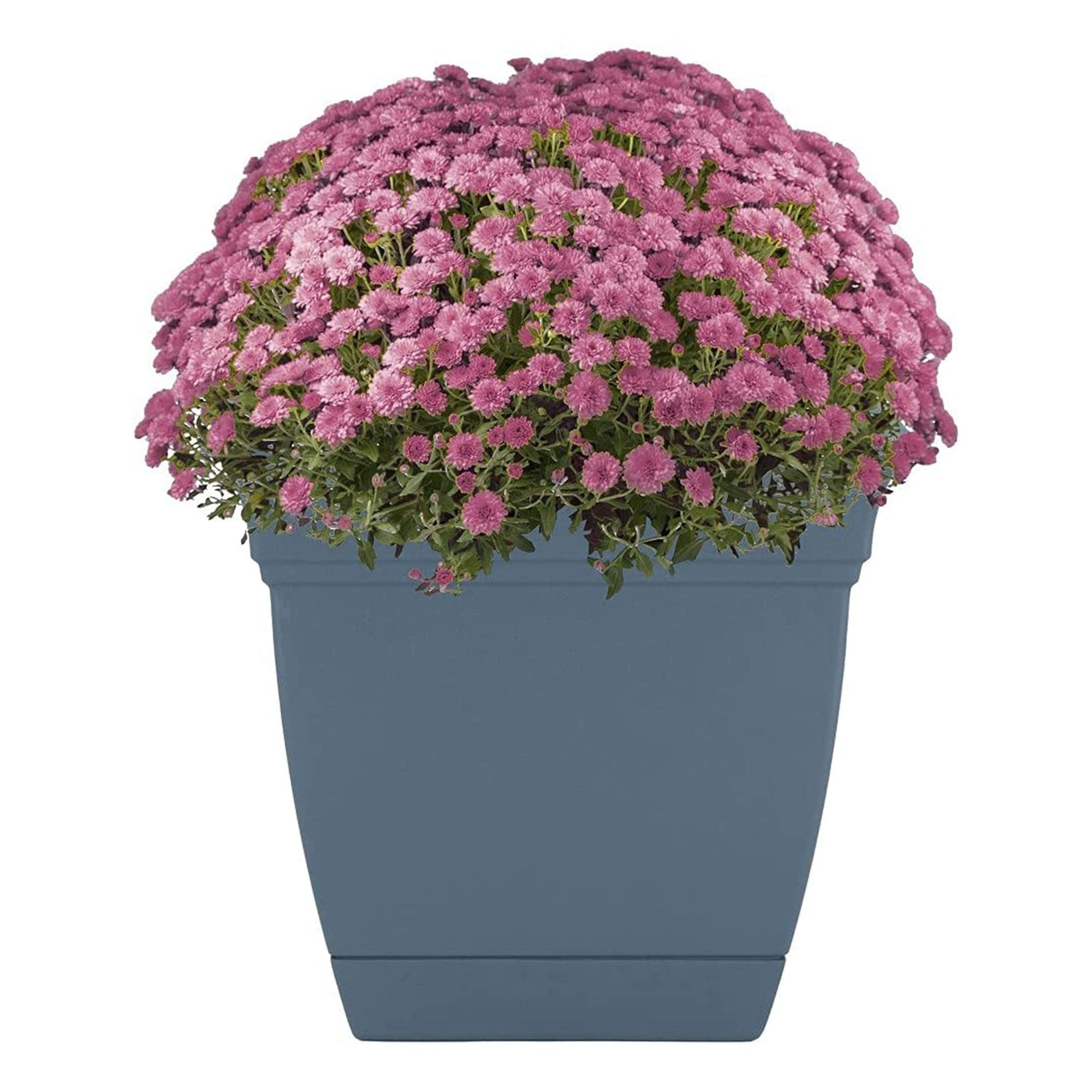 - With its classic silhouette and deep slate blue color, this plastic planter adds a touch of elegance to your home decor while offering long-lasting durability for years of enjoyment