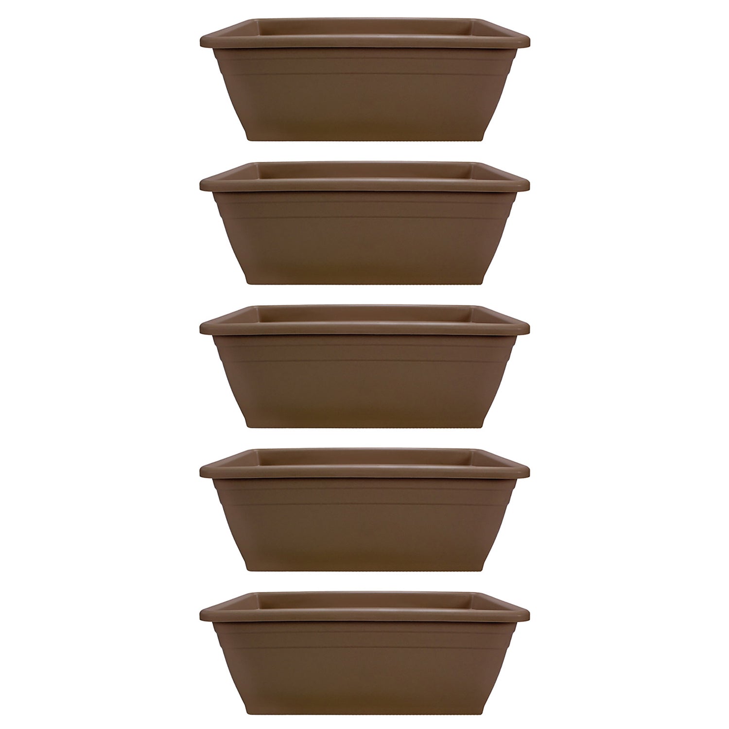 HC Companies 12-Inch Outdoor Plastic Deck Flower Planter Box, Chocolate (5 Pack)