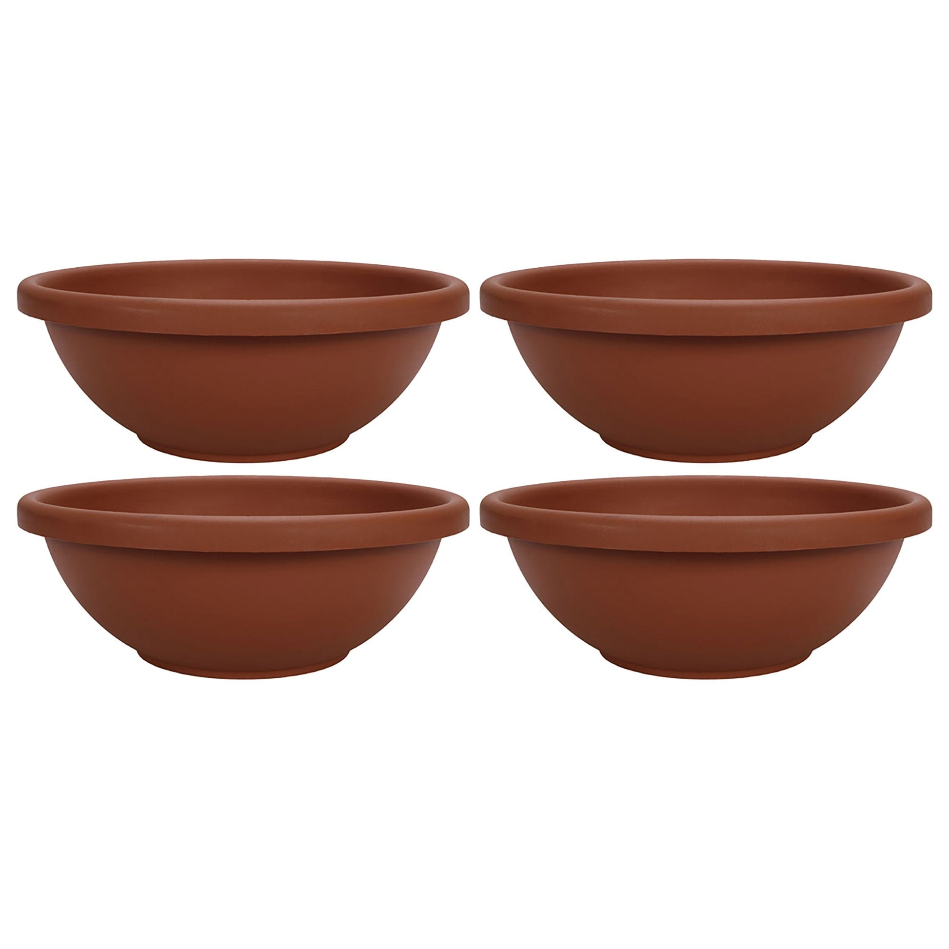 HC Companies 18 Inch Resin Garden Bowl Planter Pot, Terra Cotta Clay (2 Pack)