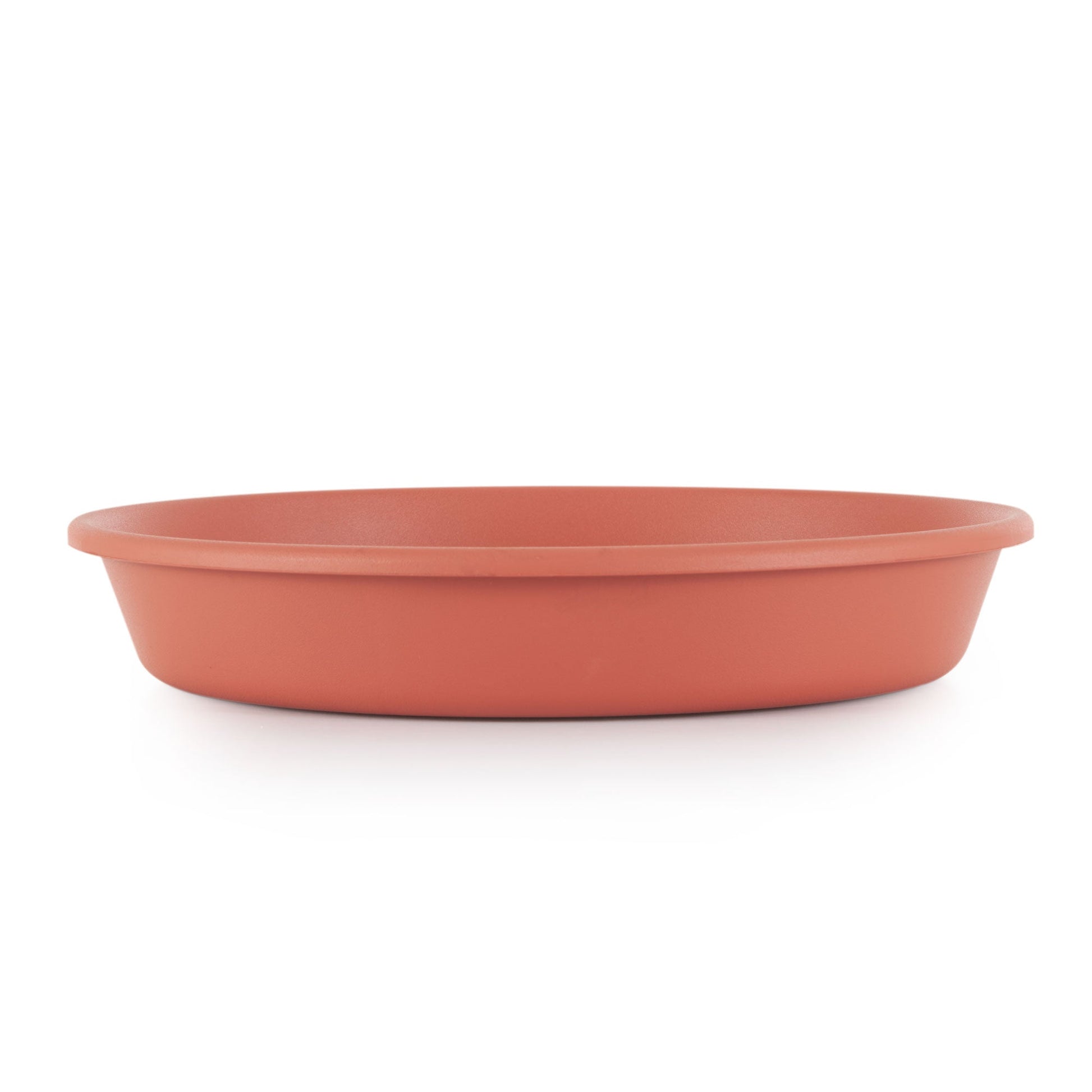 This flower pot saucer is perfect for inside and outside the home. The classic terracotta-color styling goes with any indoor decor, from farmhouse to modern. The plastic plant saucer is also designed to stand up to wear inside and out. Made with durable and lightweight plastic, this plant saucer resists wear, color fading, leaking, and cracking.