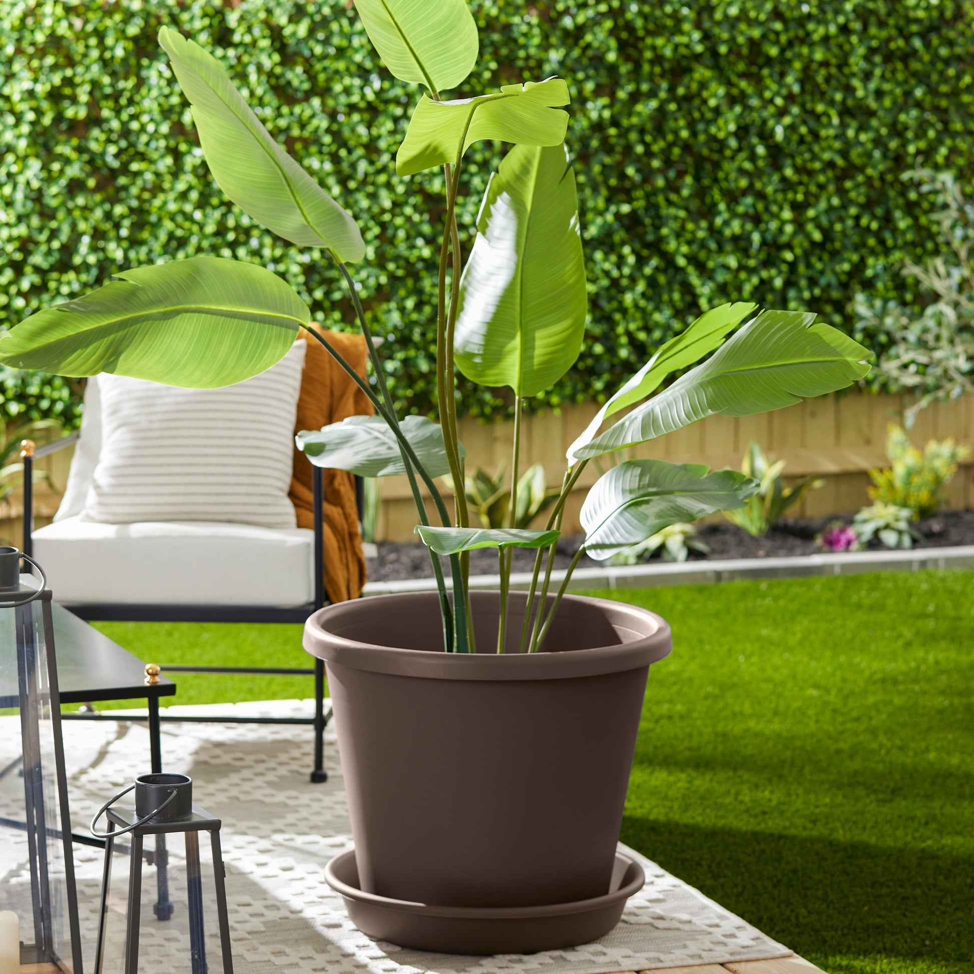 HC Companies Classic Plastic 21 Inch Round Flower Plant Pot Deep Saucer, Brown