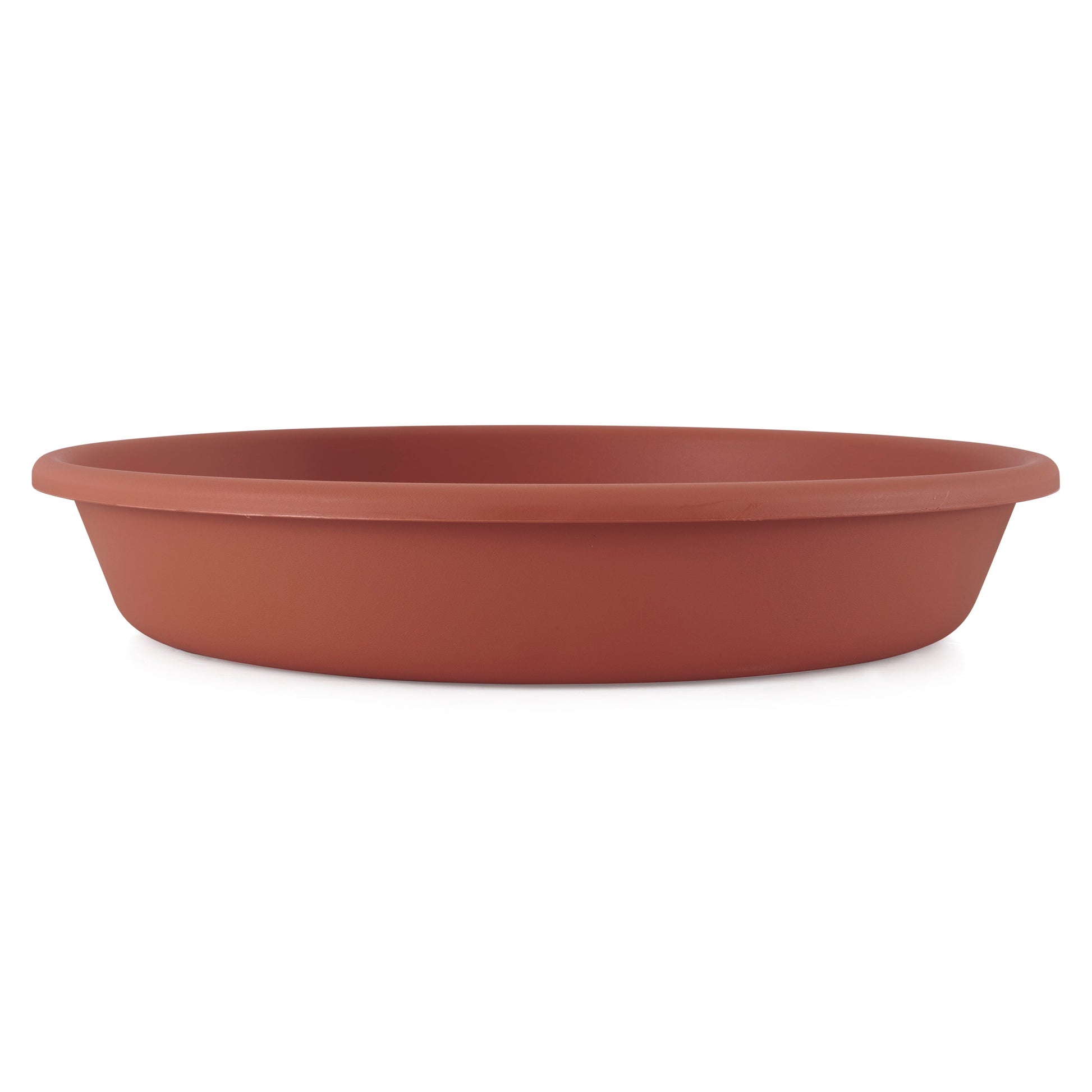 The round plastic saucer is designed to perfectly match your classic planter. Match the color exactly or mix and match products with a range of natural and traditional colors. Just like the planters, these drainage trays are durable meaning they won't fade in the sun, they won't crack, and they won't leak.