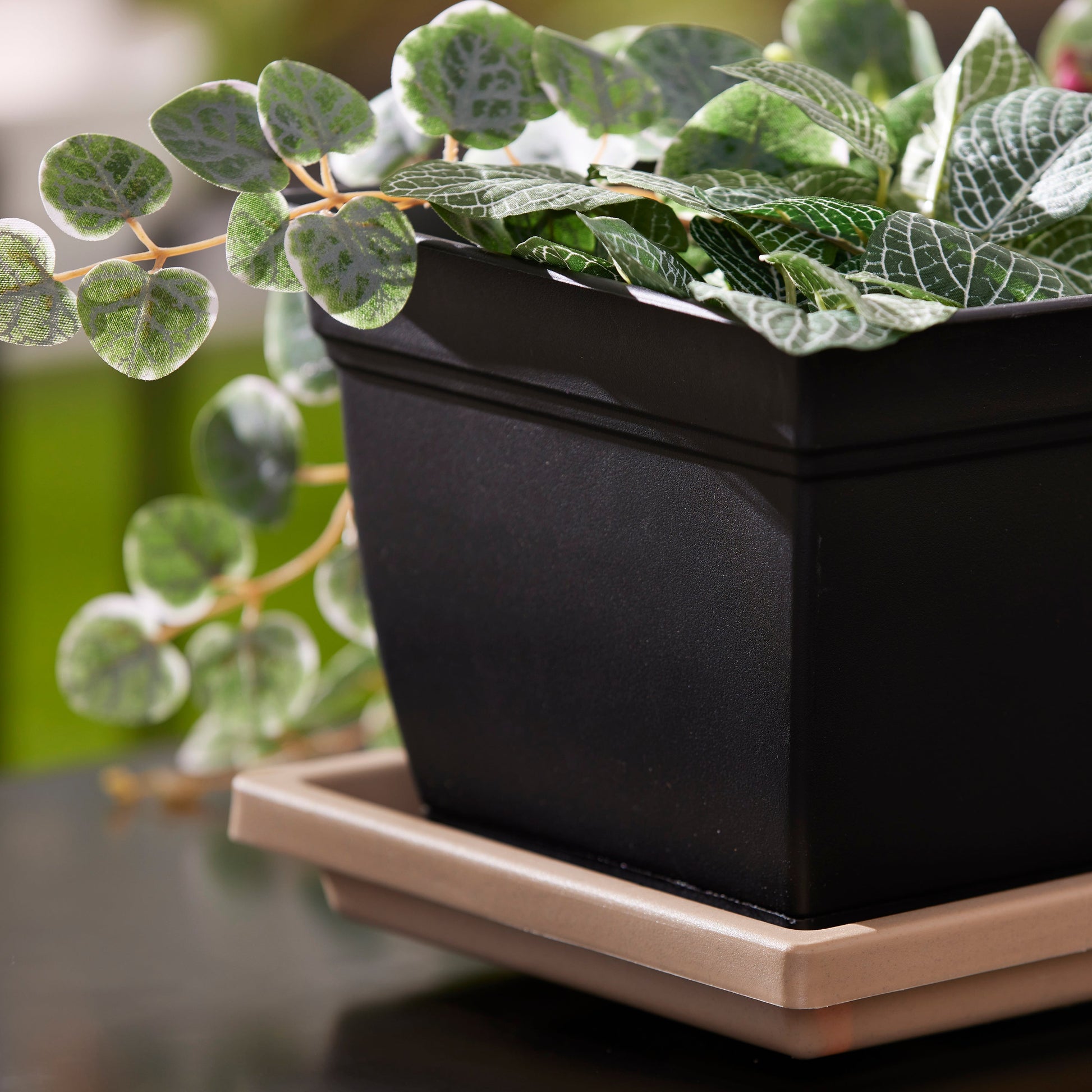 - Keep extra moisture that drips from your flower box contained with this plastic plant saucer