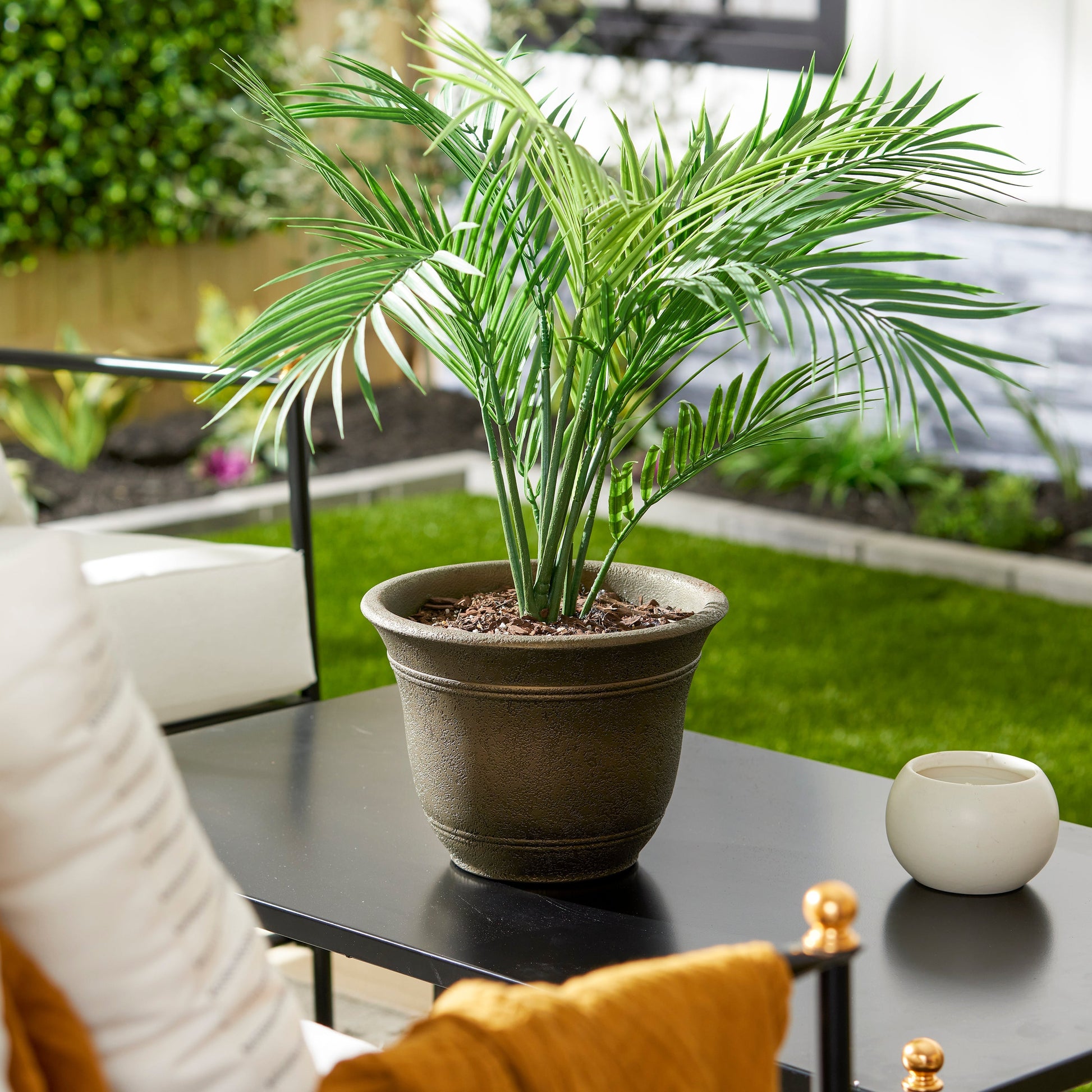 - Made of low-maintenance, durable, and colorfast resin that stands up to weather and wear