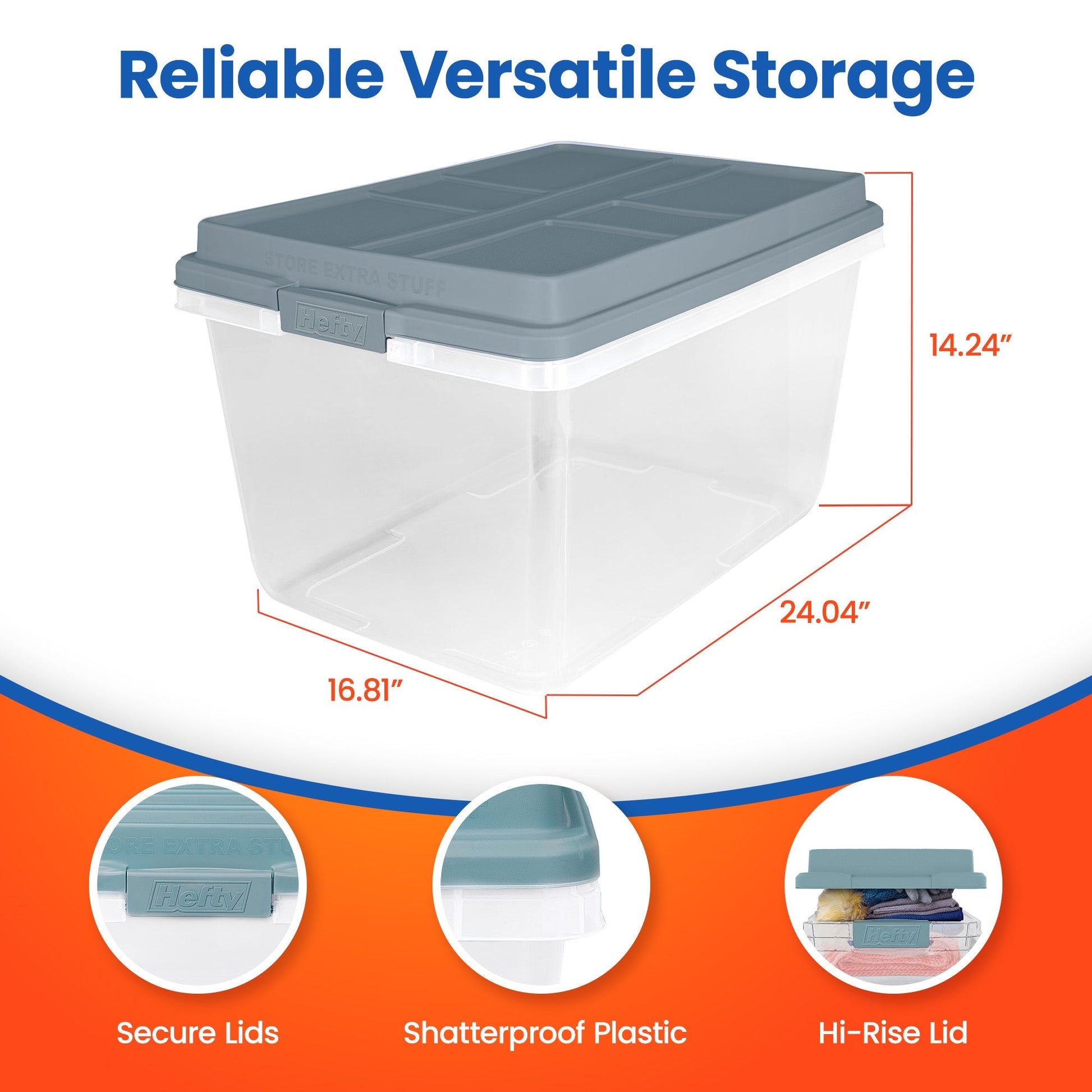 Transform your living spaces with the Hefty 72 Quart Hi-Rise Storage Bins. Embrace a clutter-free lifestyle and enjoy a cleaner, more organized home.