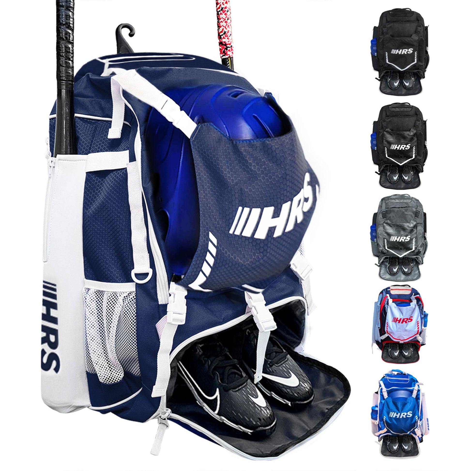 Hit Run Steal Bat Bag Backpack, Holds up to 4 Bats, Glove, and Helmet, Navy Blue