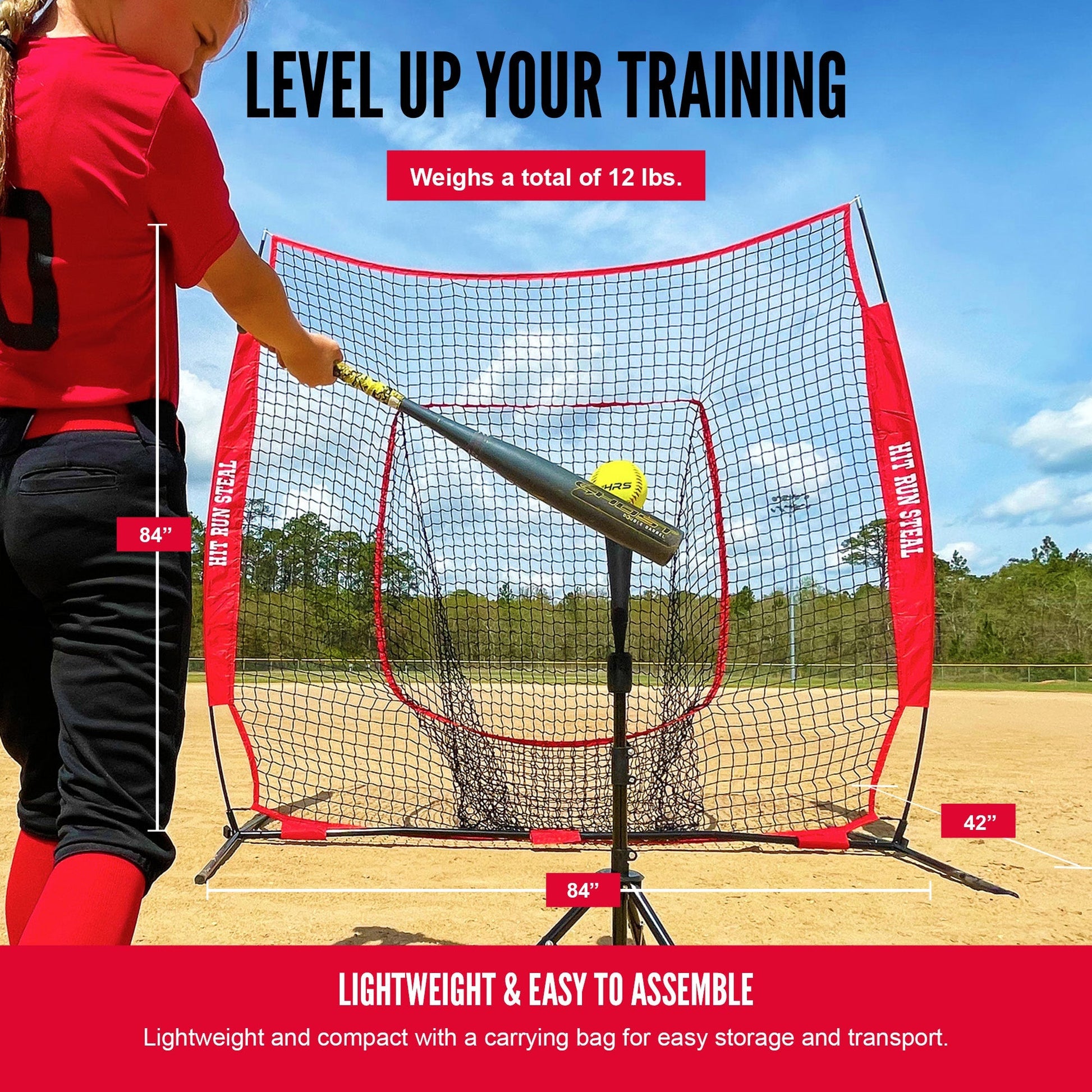 Hit Run Steal Heavy Duty Softball Baseball Net with Carrying Bag for Sports, Red