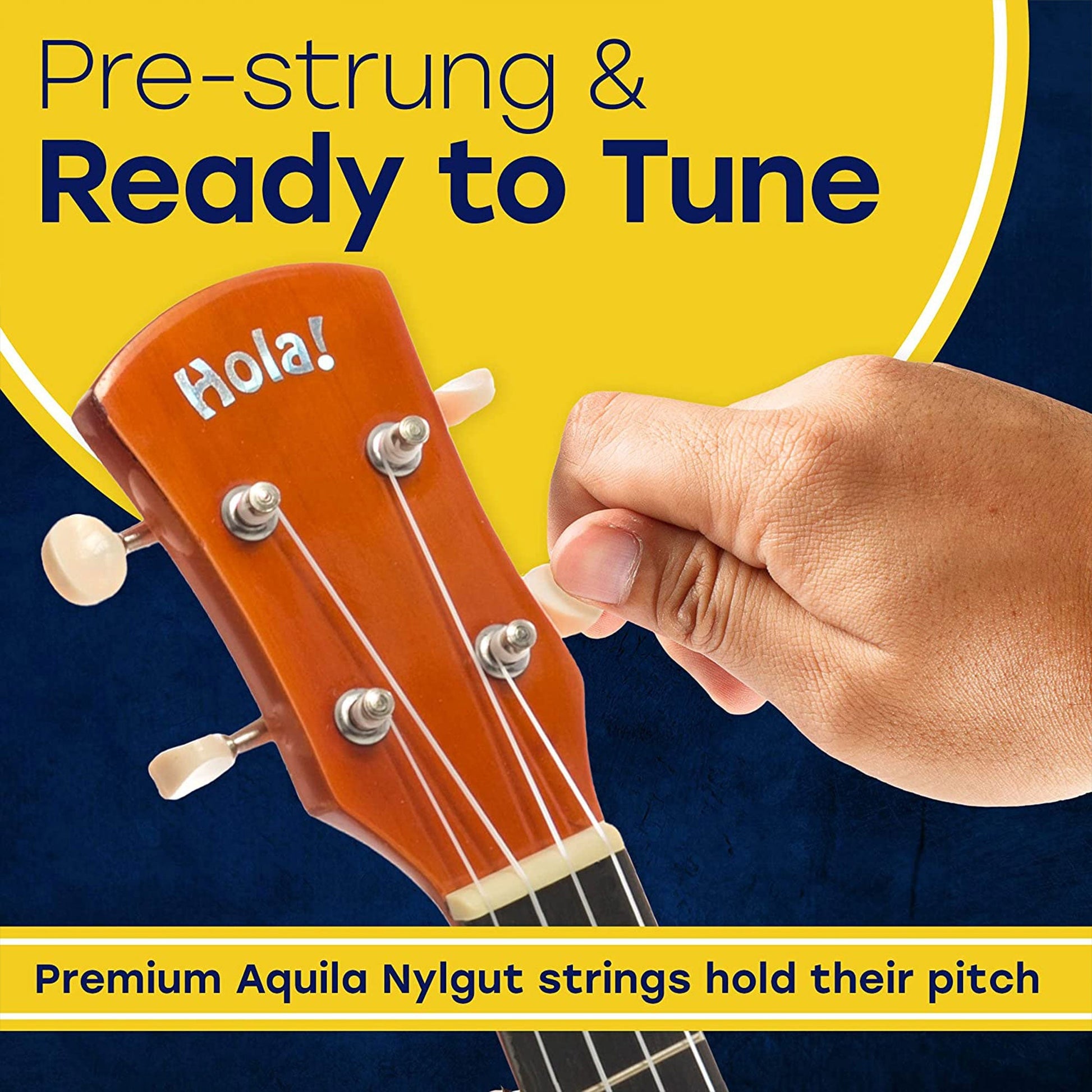 Hola! Music Color Series Soprano Ukulele Set with Tote Bag, Strap, & Picks, Blue