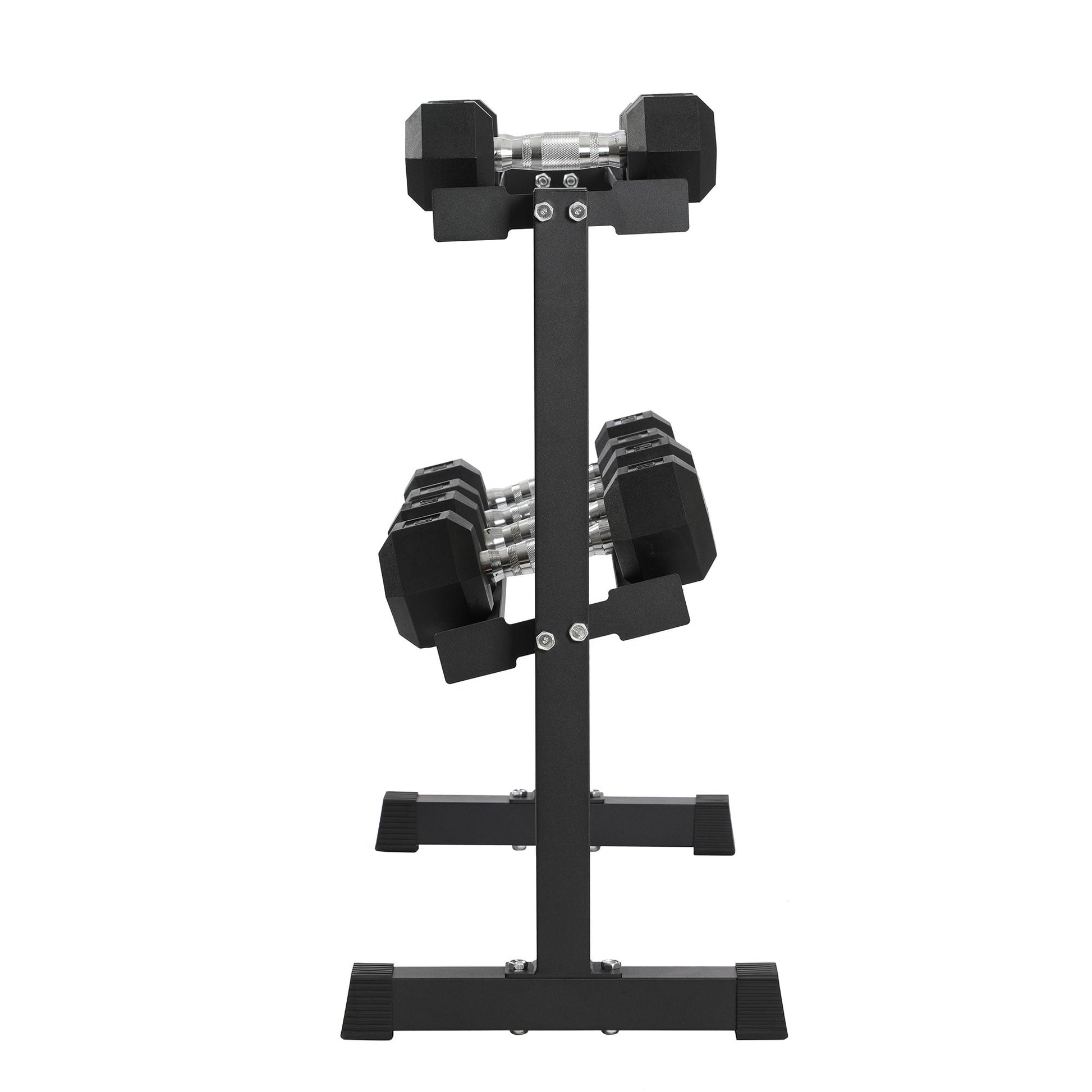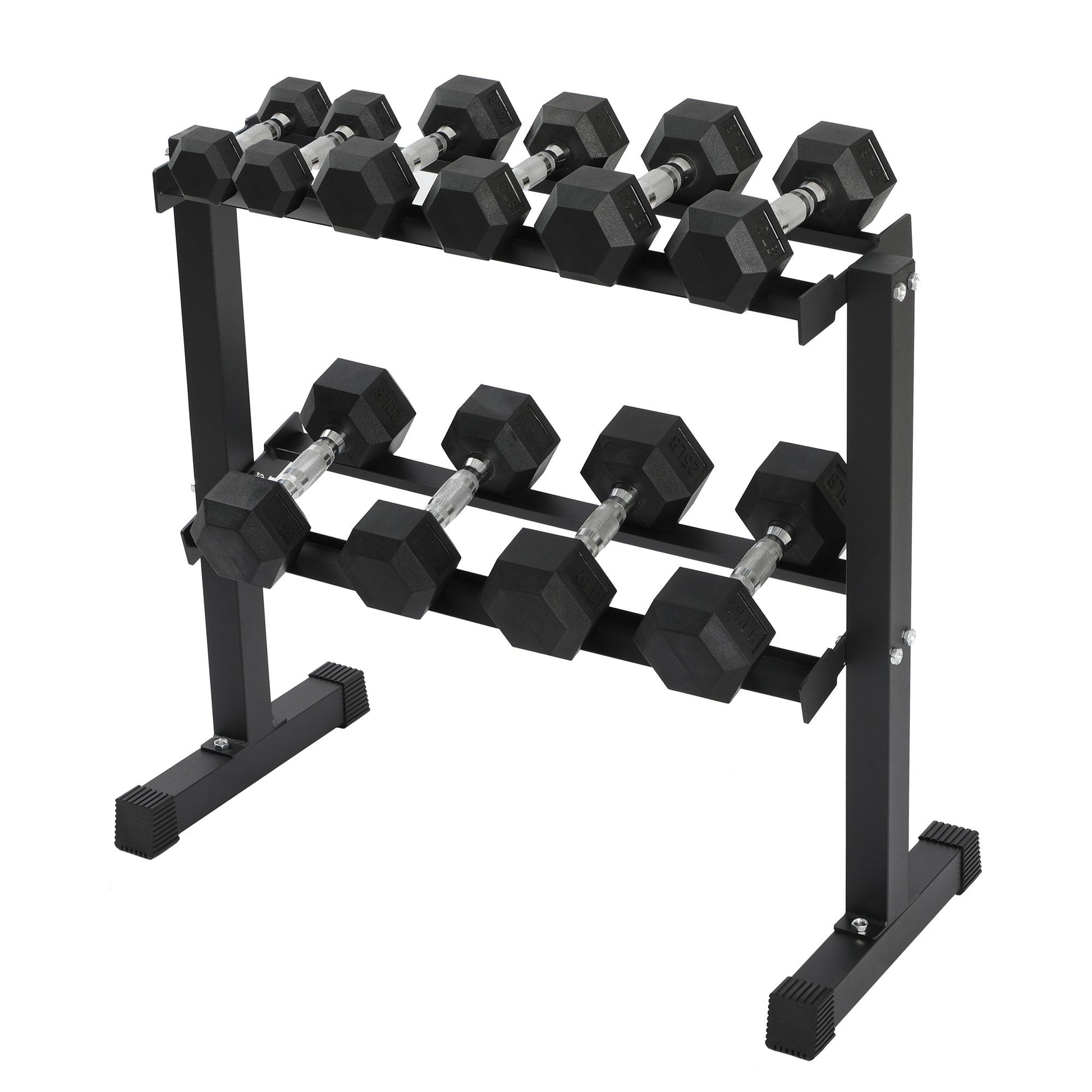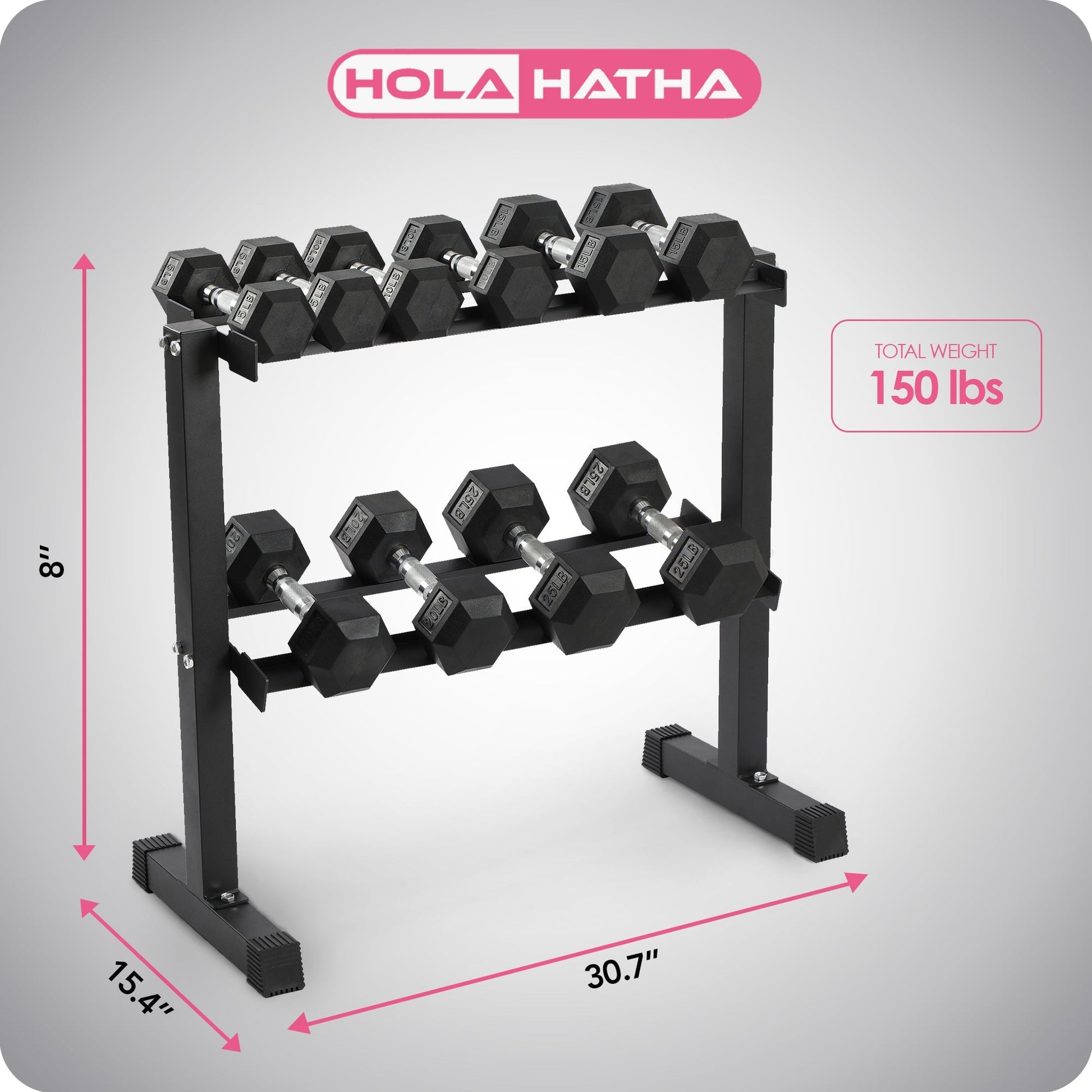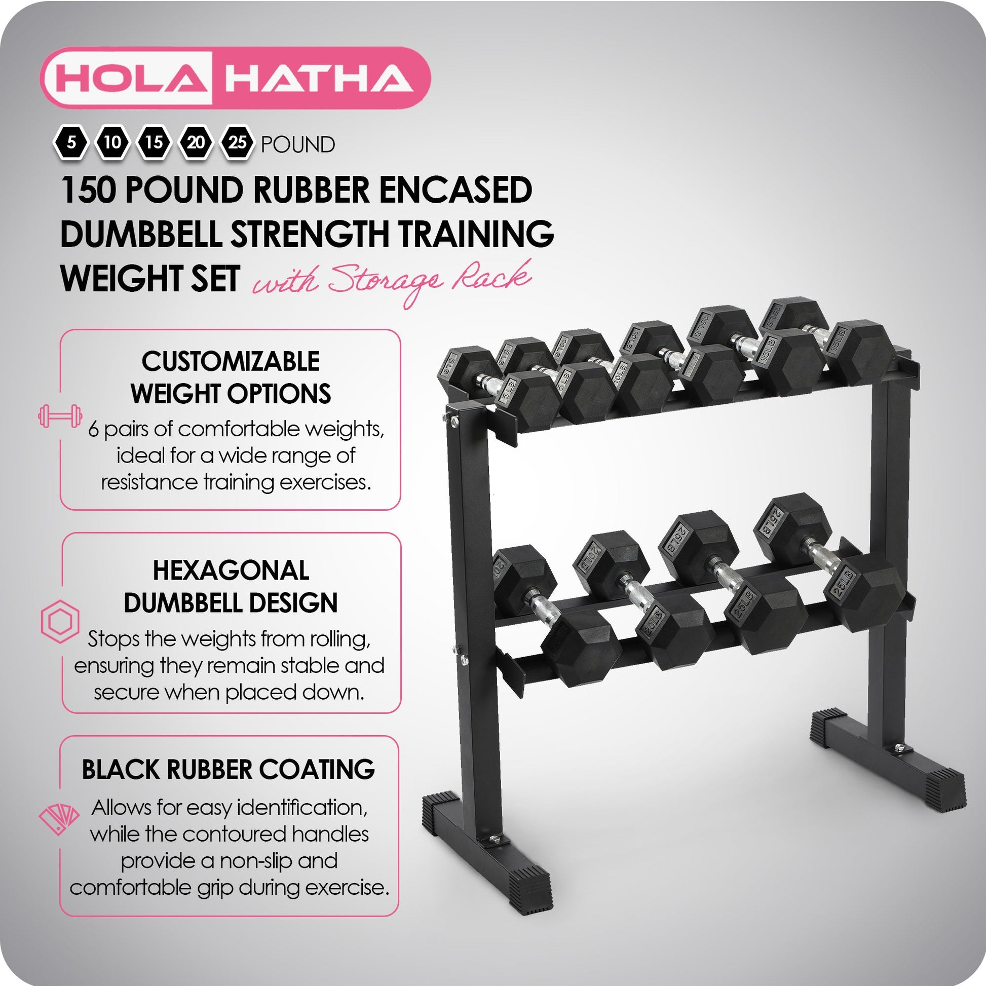HolaHatha 150 Pound Rubber Encased Dumbbell Strength Training Weight Set w/ Rack