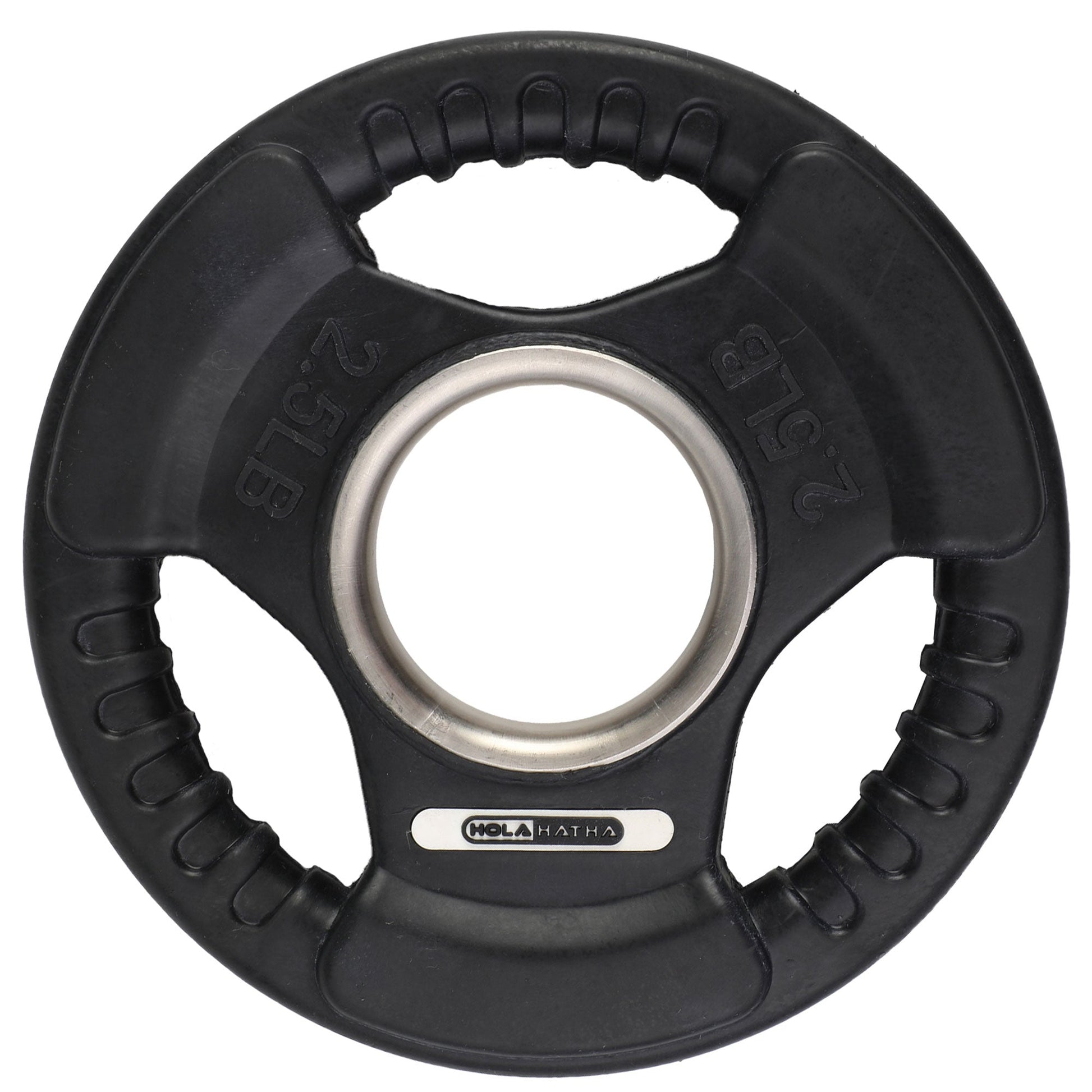 HolaHatha 2.5 Pound Olympic Rubber Coated Weight Plate w/Handle, Black (2 Pack)
