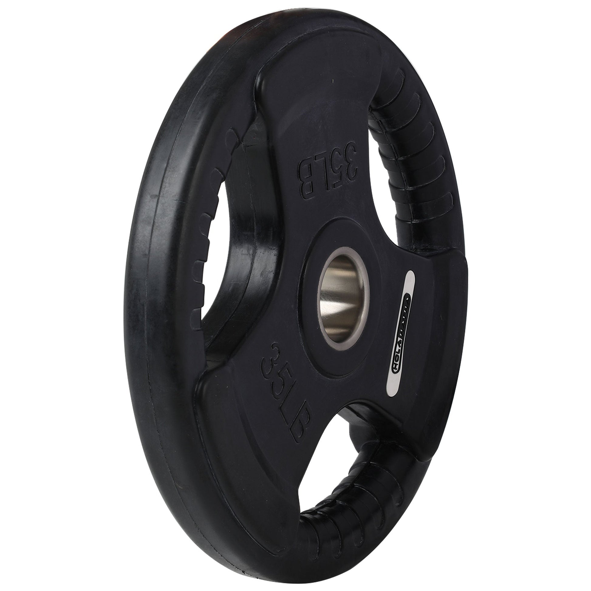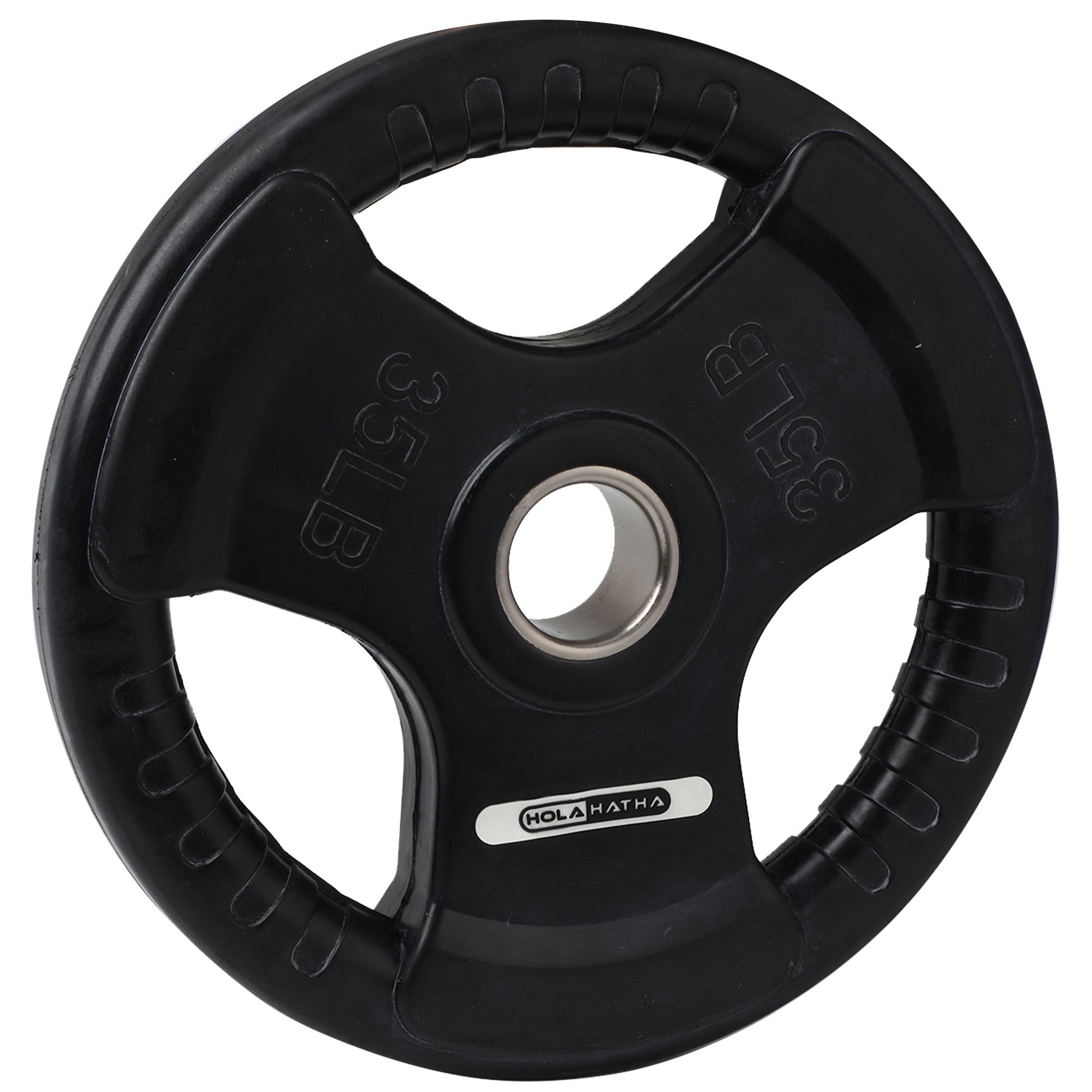 HolaHatha 35 Pound Olympic Rubber Coated Weight Plate w/Tri Grip Handle, Black