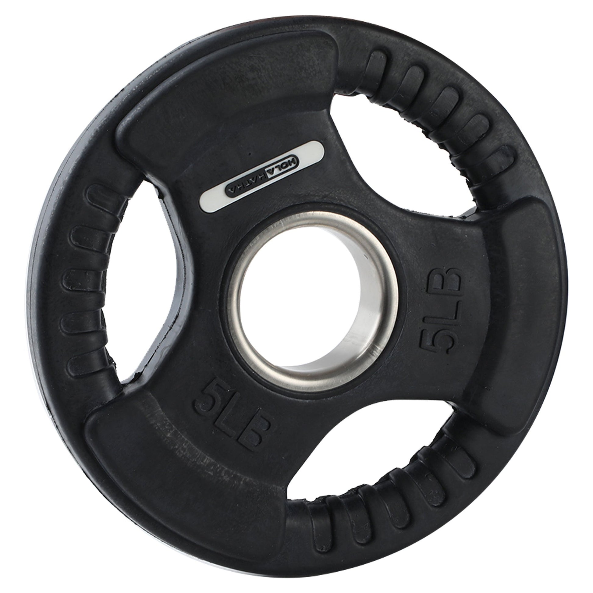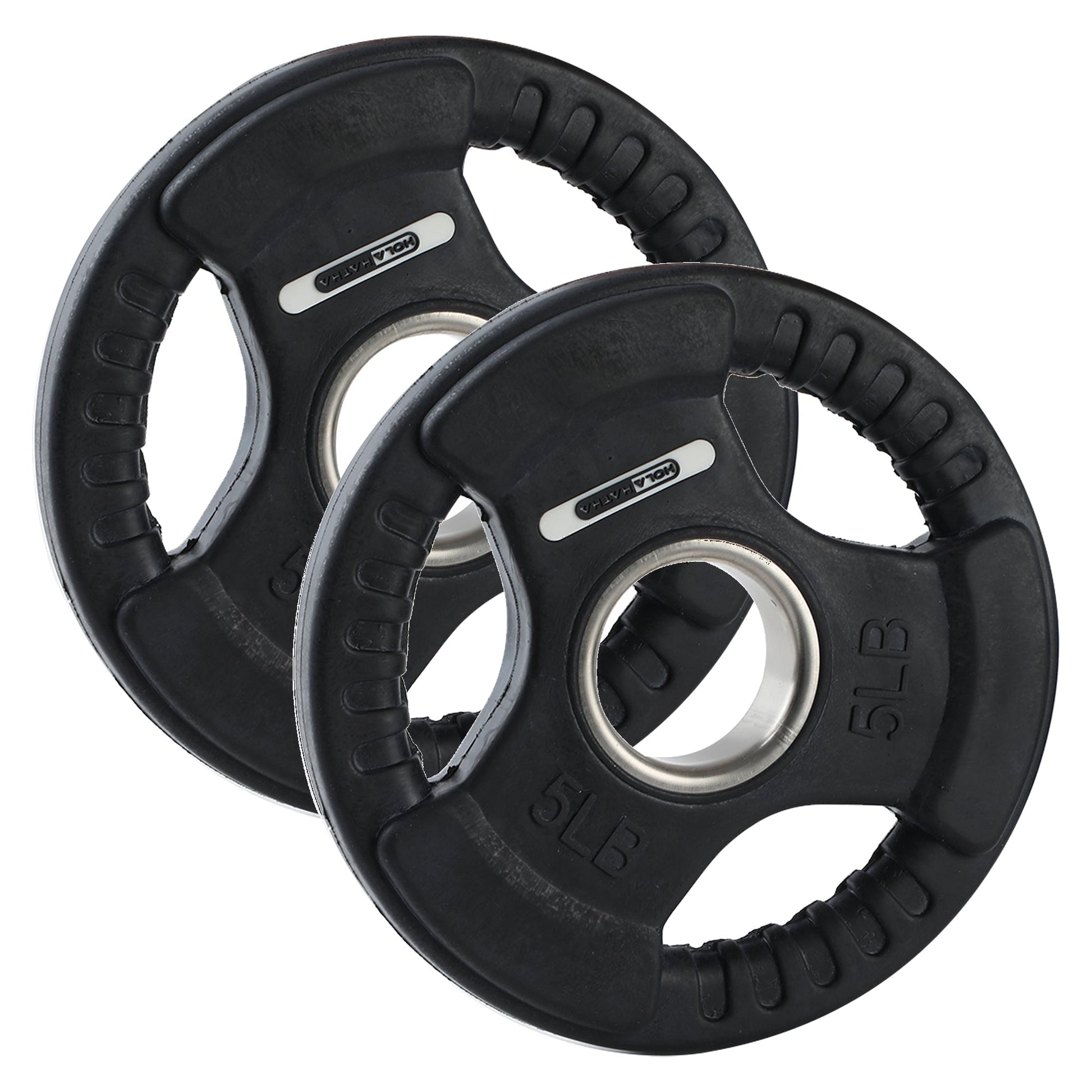 HolaHatha 5 Pound Olympic Rubber Coated Weight Plate with Handle, Black (2 Pack)
