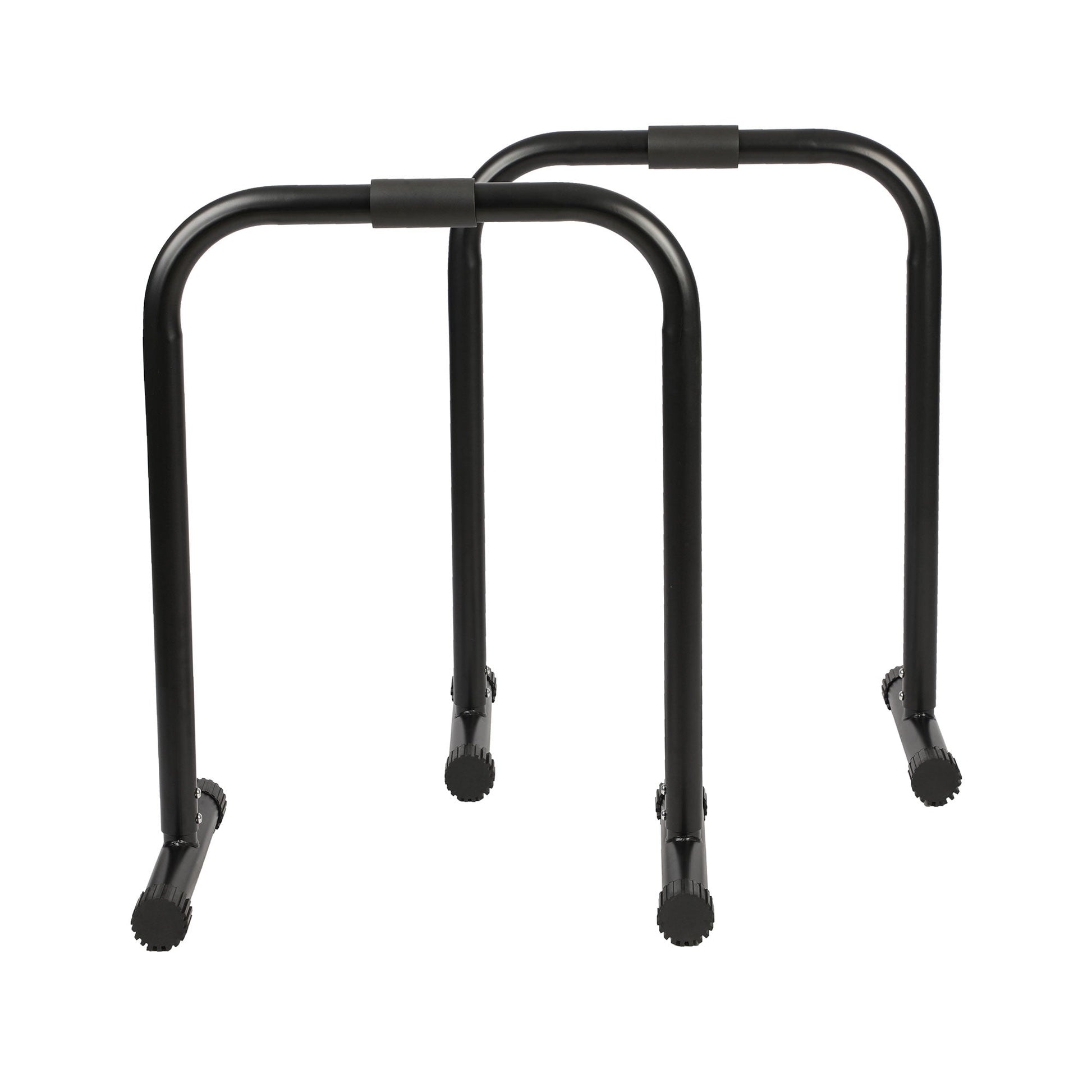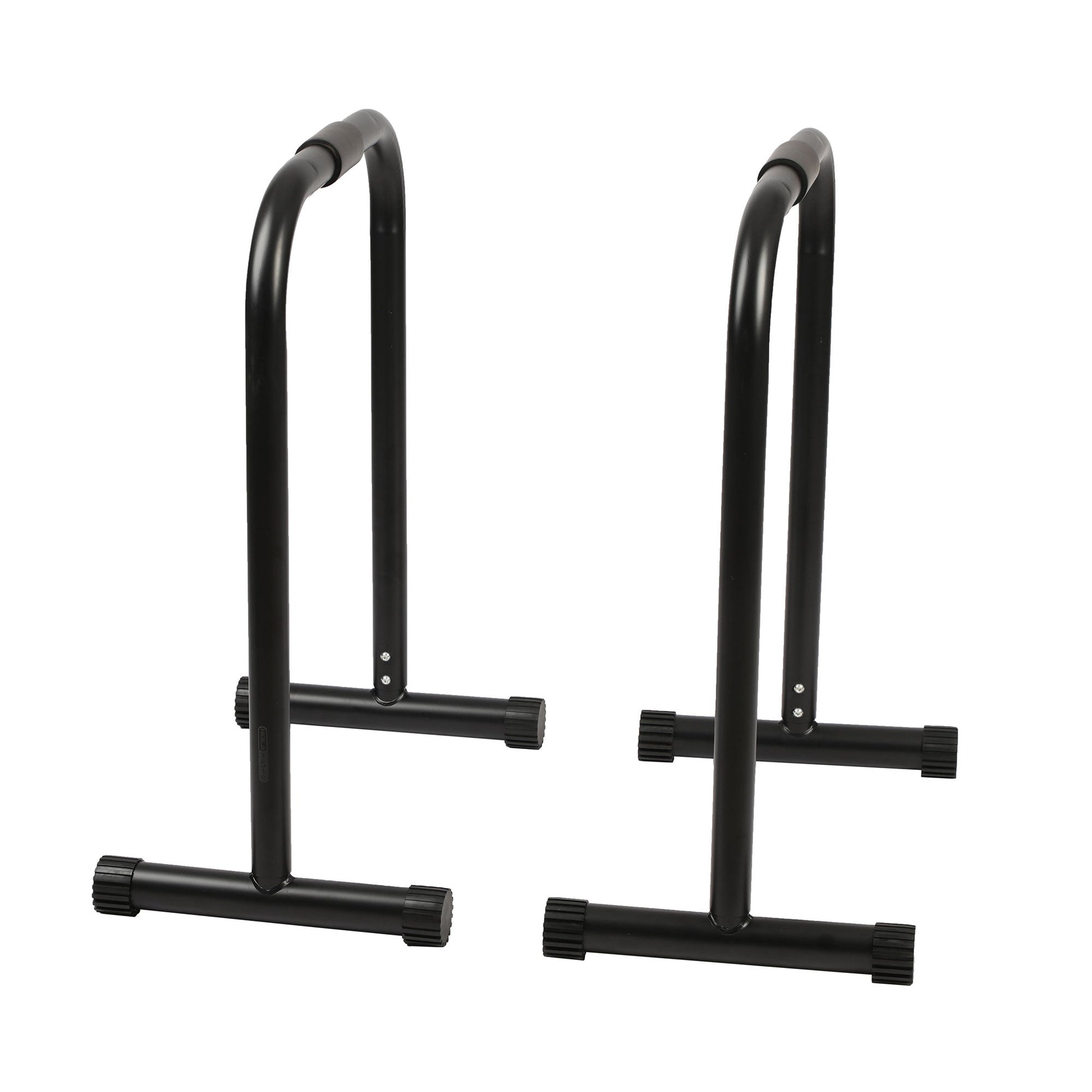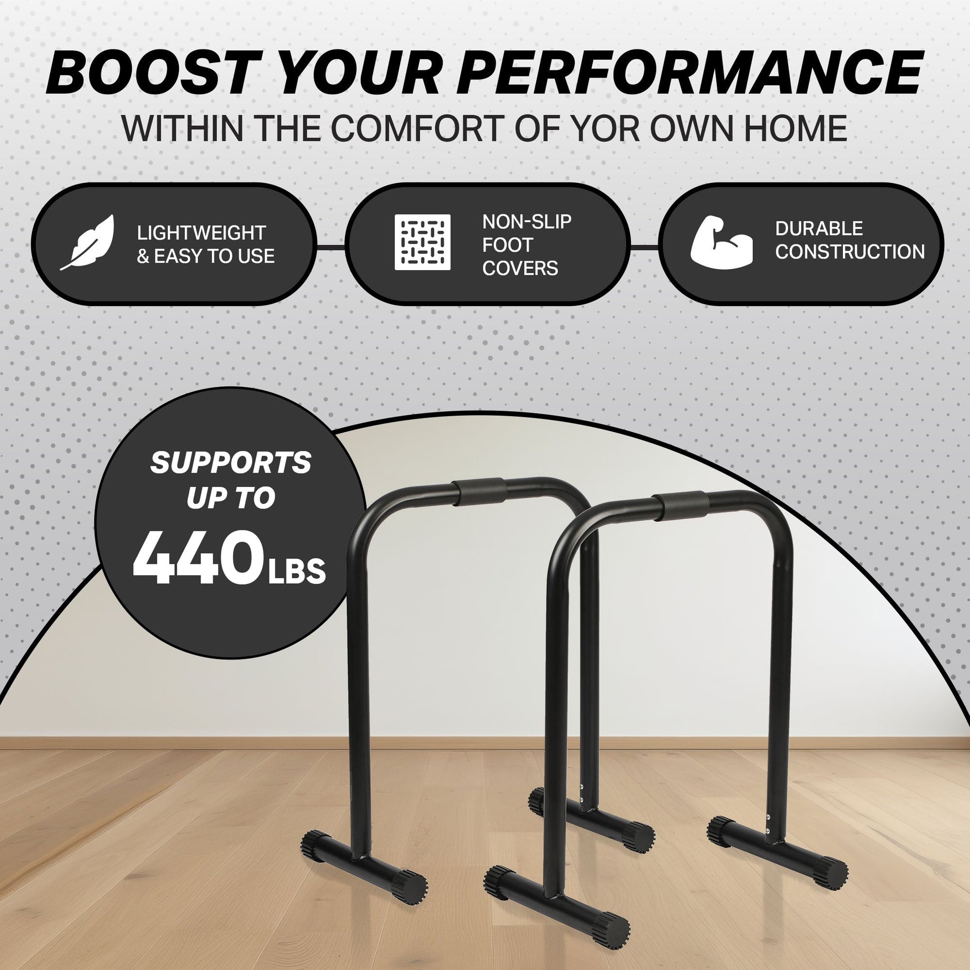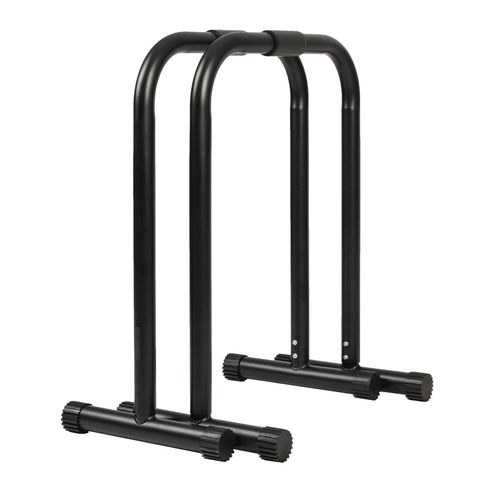 HolaHatha Dip Station Bar with Adjustable Foot and Non Slip Foot Covers, Black