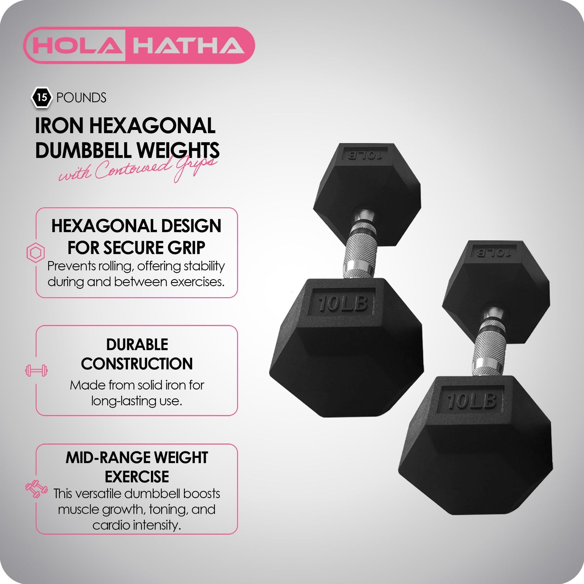 HolaHatha Iron Hexagonal Cast Home Exercise Dumbbell Free Weight, 15 Pounds
