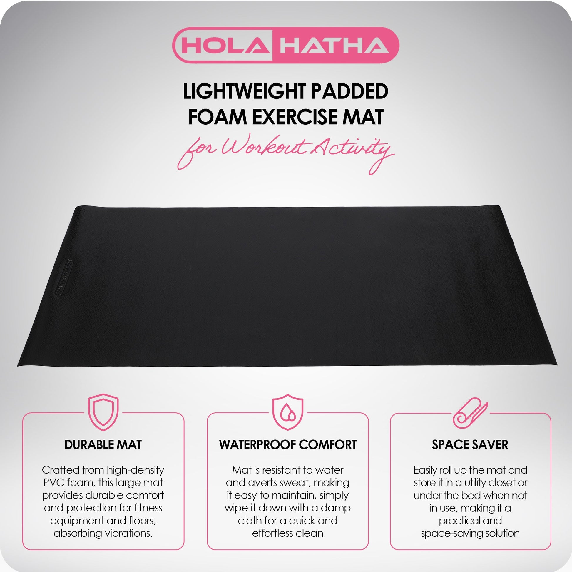 Transform your workout space with the HolaHatha Medium Lightweight Padded Mat, engineered with heavy-duty high-density PVC foam for unparalleled durability and comfort.