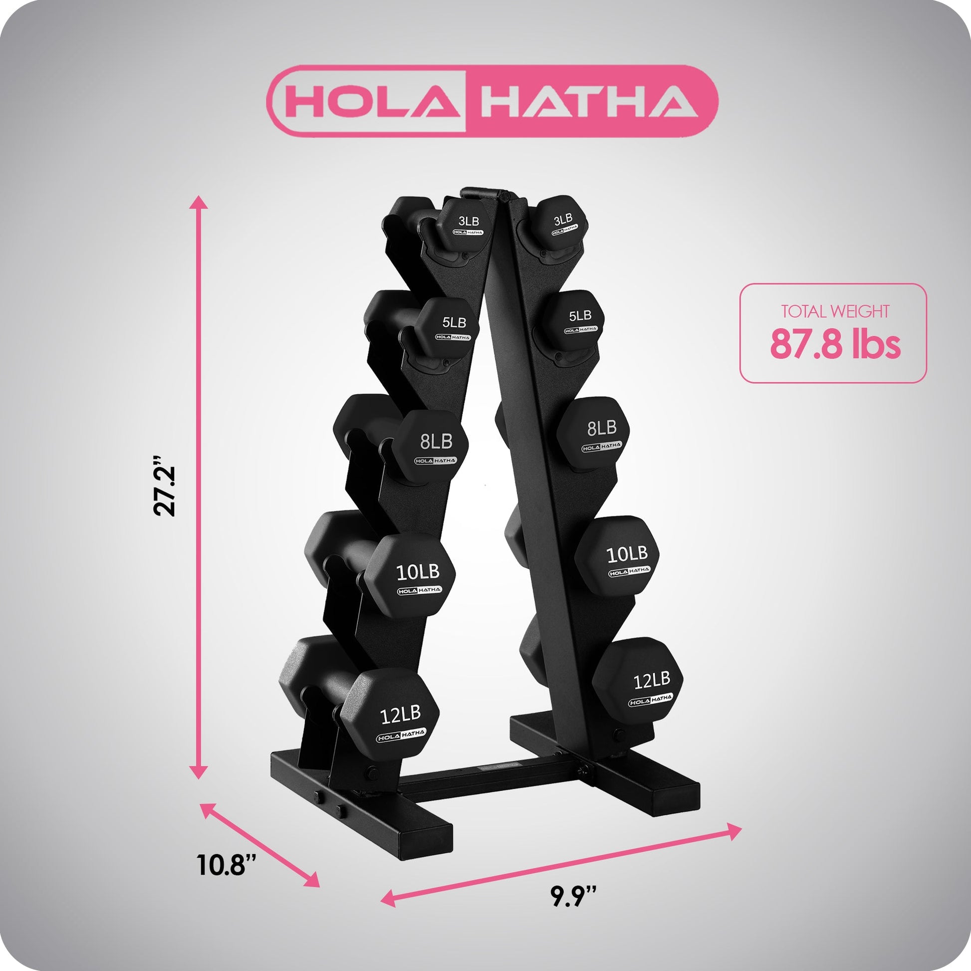 HolaHatha Neoprene Coated Dumbbell Free Hand Weight Set with Storage Rack, Black