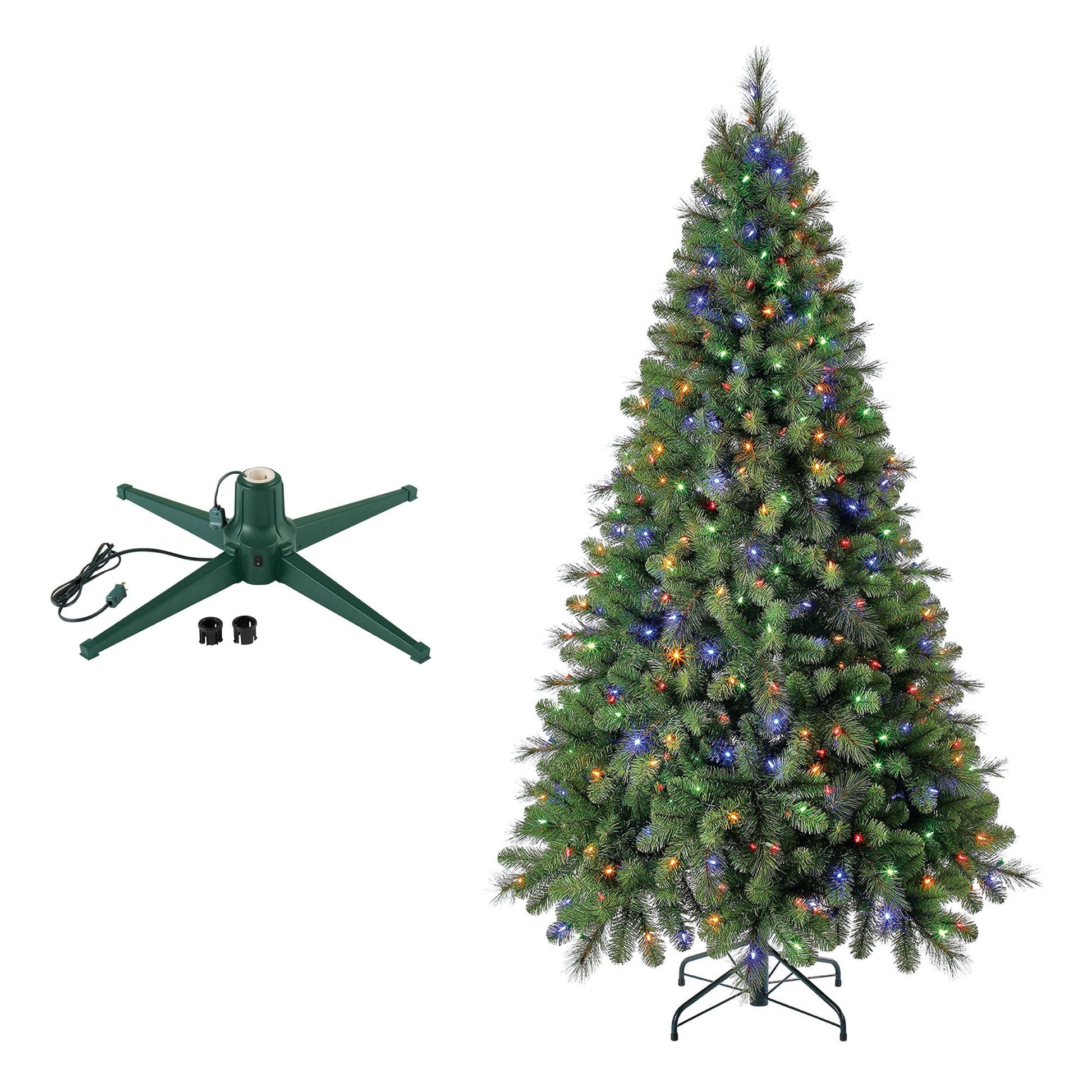 Standing tall at 7 feet with 923 lush foliage tips and a 48-inch width, this tree creates a stunning winter wonderland without the trouble of shedding needles. Its Quick Set feature allows you to easily connect tree sections, while pre-wired light poles and 450 color-changing LED lights with 8 dazzling effects instantly fill your space with holiday cheer. The tree’s lifelike greenery and full profile ensure it becomes the centerpiece of your holiday decor, perfect for cozy apartments or grand living spaces. Designed for effortless assembly and storage, it includes a durable metal stand to ensure stability and versatility, giving you more time to enjoy the festive season with family and friends. Complementing the tree is the Home Heritage Artificial Christmas Tree Base Stand, offering robust support for trees up to 7.5 feet tall. With a generous 31-inch diameter, it accommodates tree poles from 1 to 1.5 inches and features a sleek, 360-degree rotation to showcase every beautifully decorated angle. The stand also provides 2.5 inches of clearance, perfect for adding tree skirts and beautifully wrapped presents underneath. Built from durable metal, this stand ensures your tree remains secure throughout the season and easily stores away when the festivities end.