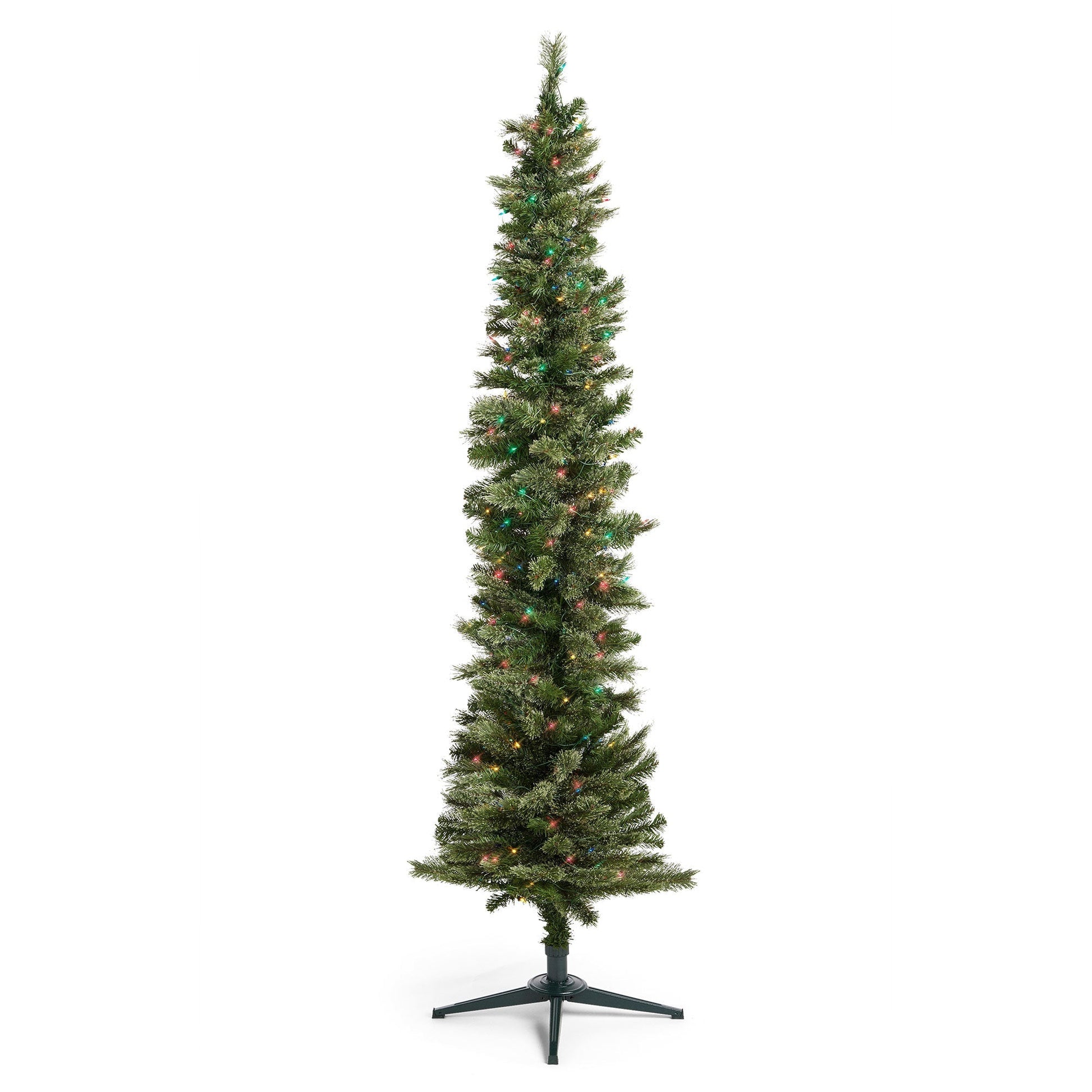 Bring the magic of the holidays to your home with the Home Heritage Stanley Pencil Pine Pre-Lit Artificial Christmas Tree.