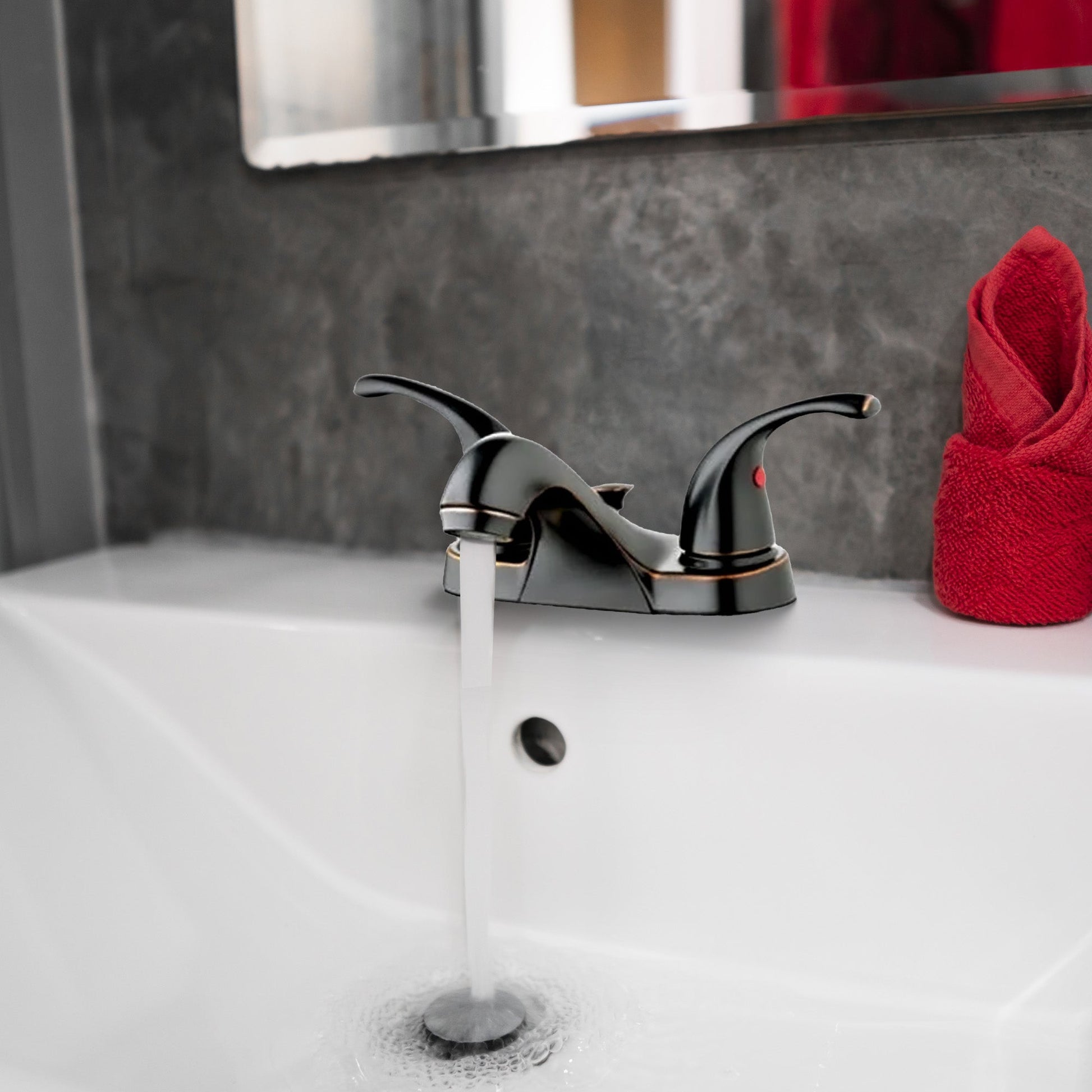 HomePointe Center Set Lavatory Faucet with 2 Zinc Lever Handles, Brushed Bronze