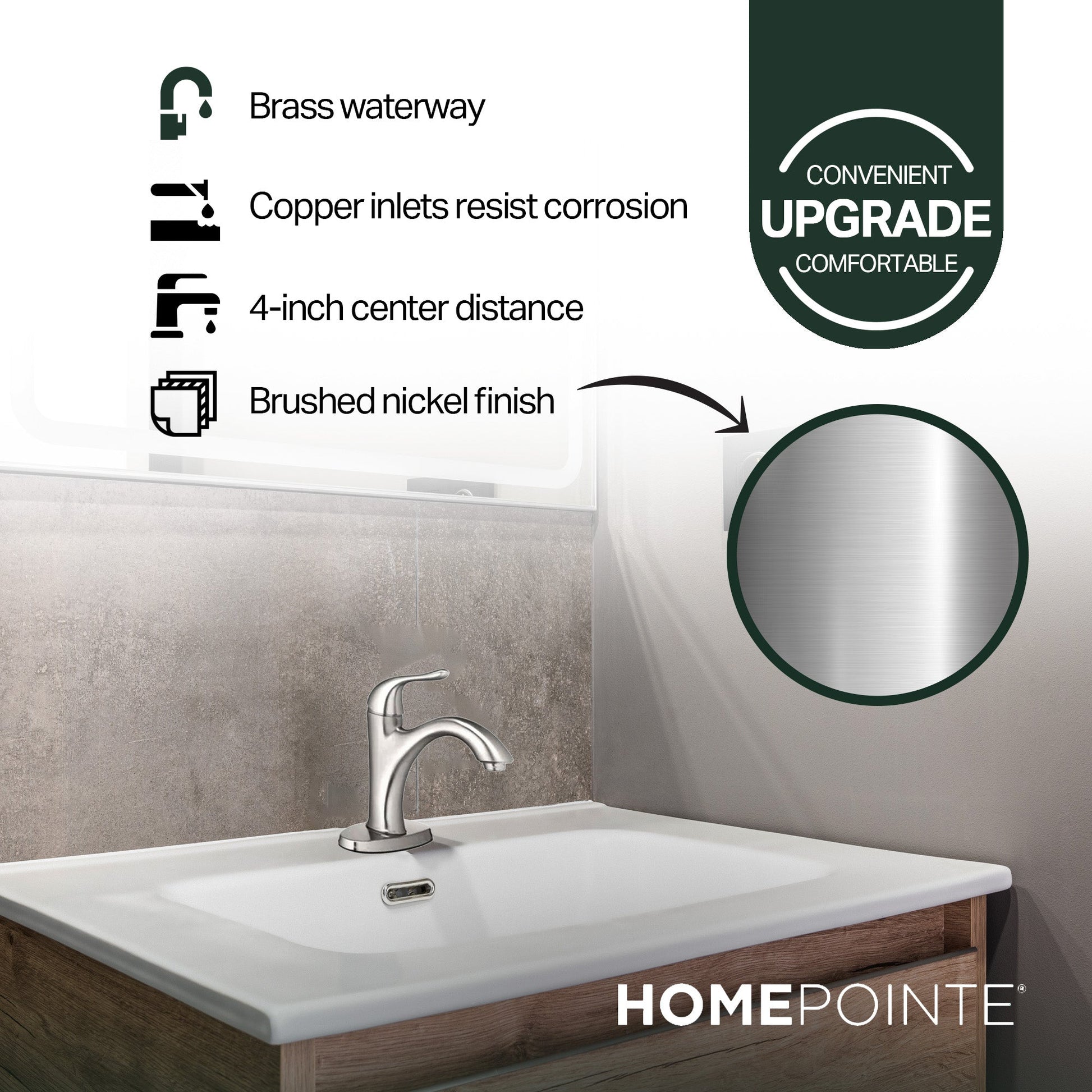 - Upgrade your bathroom's aesthetic with this faucet with a brushed nickel finish that exudes timeless elegance and sophistication