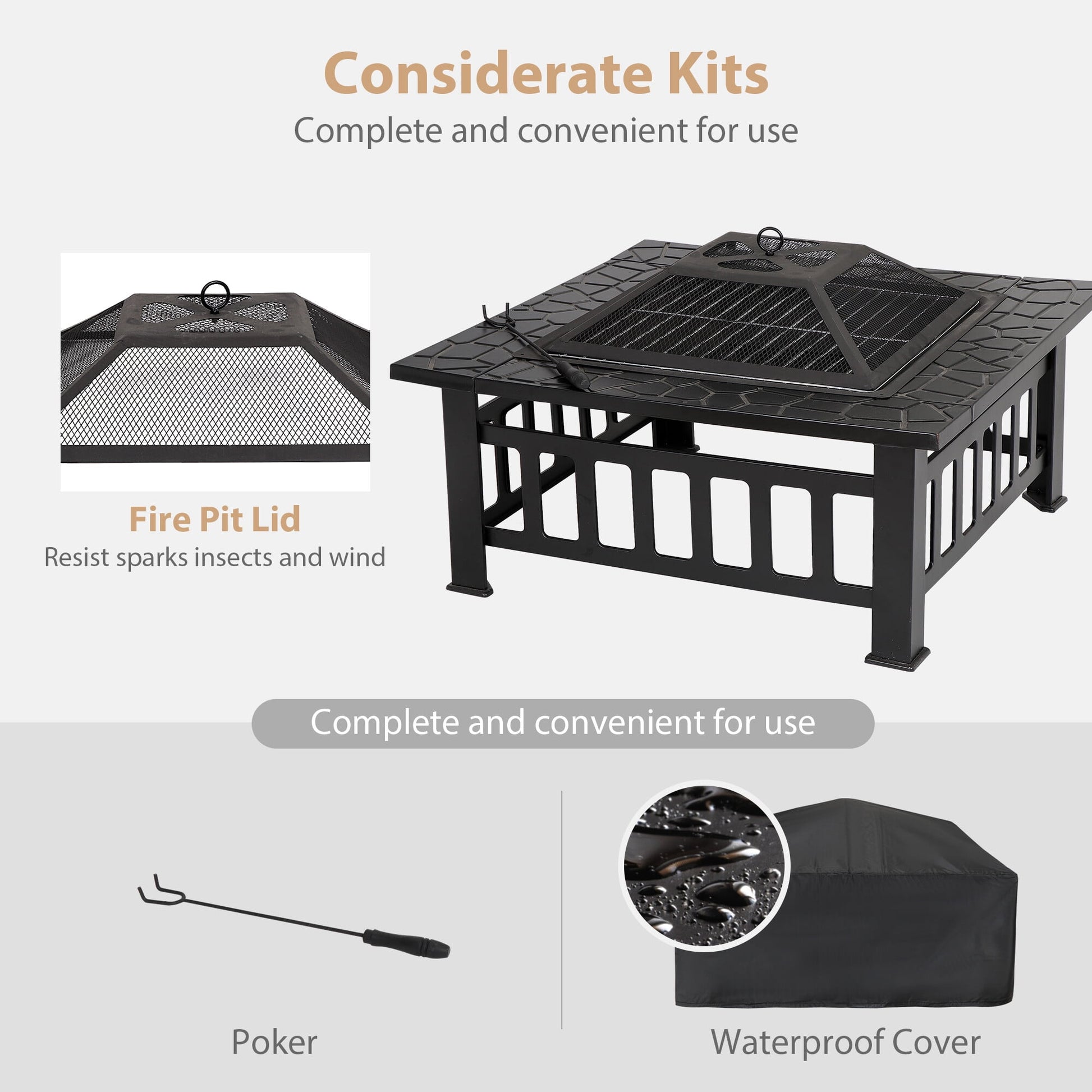 HomGarden 32'' Portable Fire Pit Wood Burning Outdoor Fireplace W/BBQ Grill & Poker & Mesh Lid