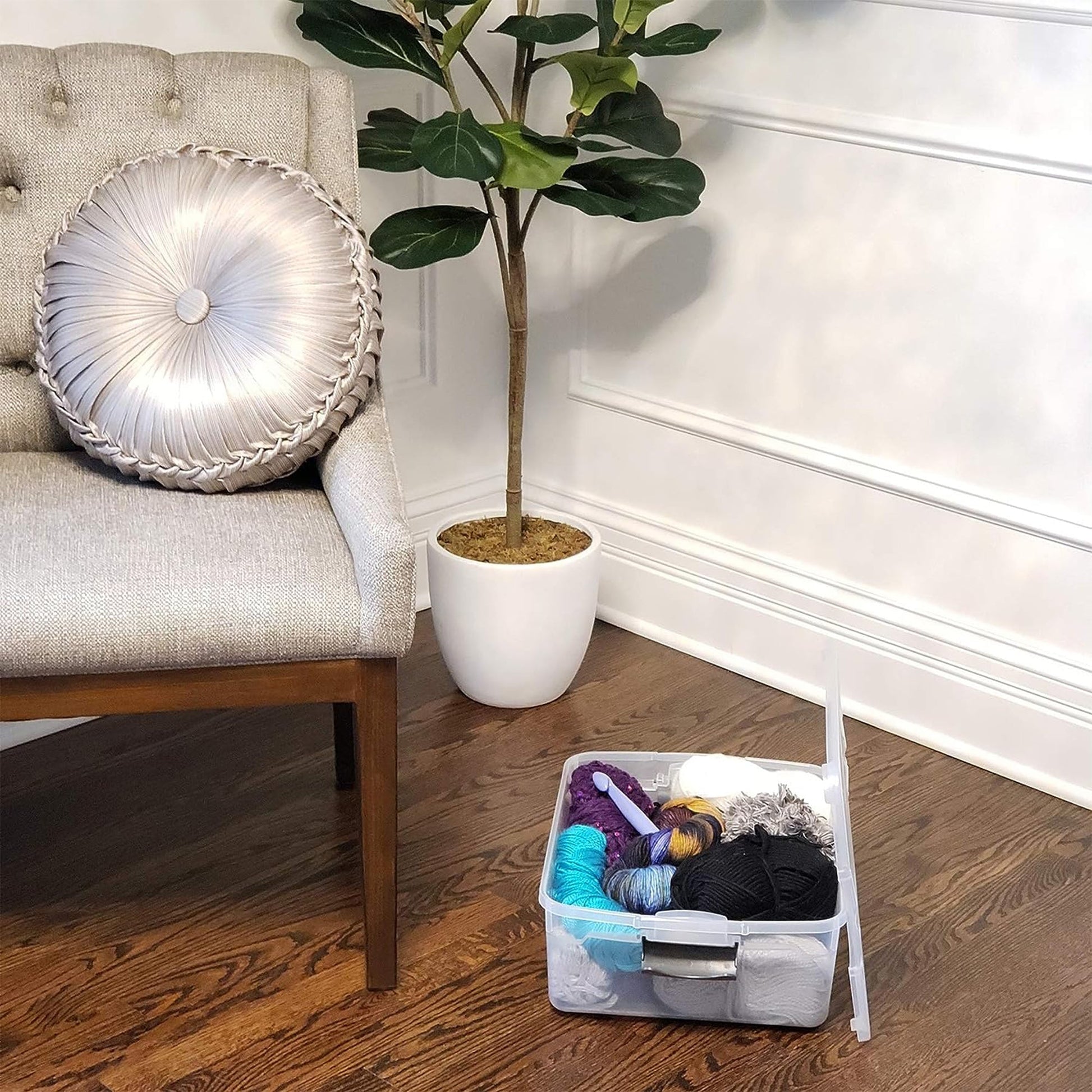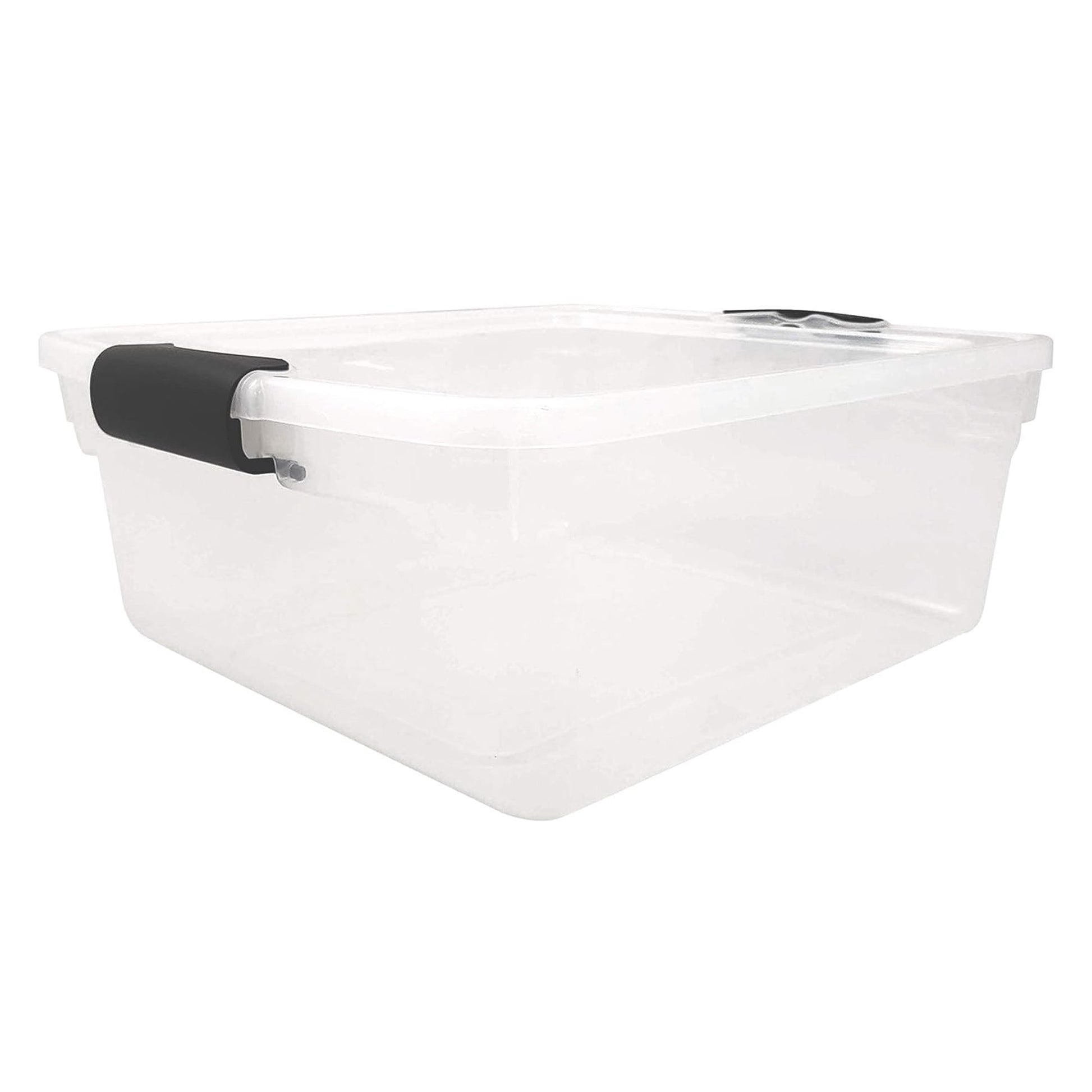 Ideal for a variety of basic household needs, these multipurpose bins can be used to store away clothing items, craft supplies, seasonal decorations, and more. With the spacious 15.5-quart capacity, the opportunities are endless. The ergonomic latching handles lock to secure the lid and provide a comfortable grip for easy carrying. When closing, the lid snaps firmly to the base to ensure all contents stay contained, concealed, and dust-free.
