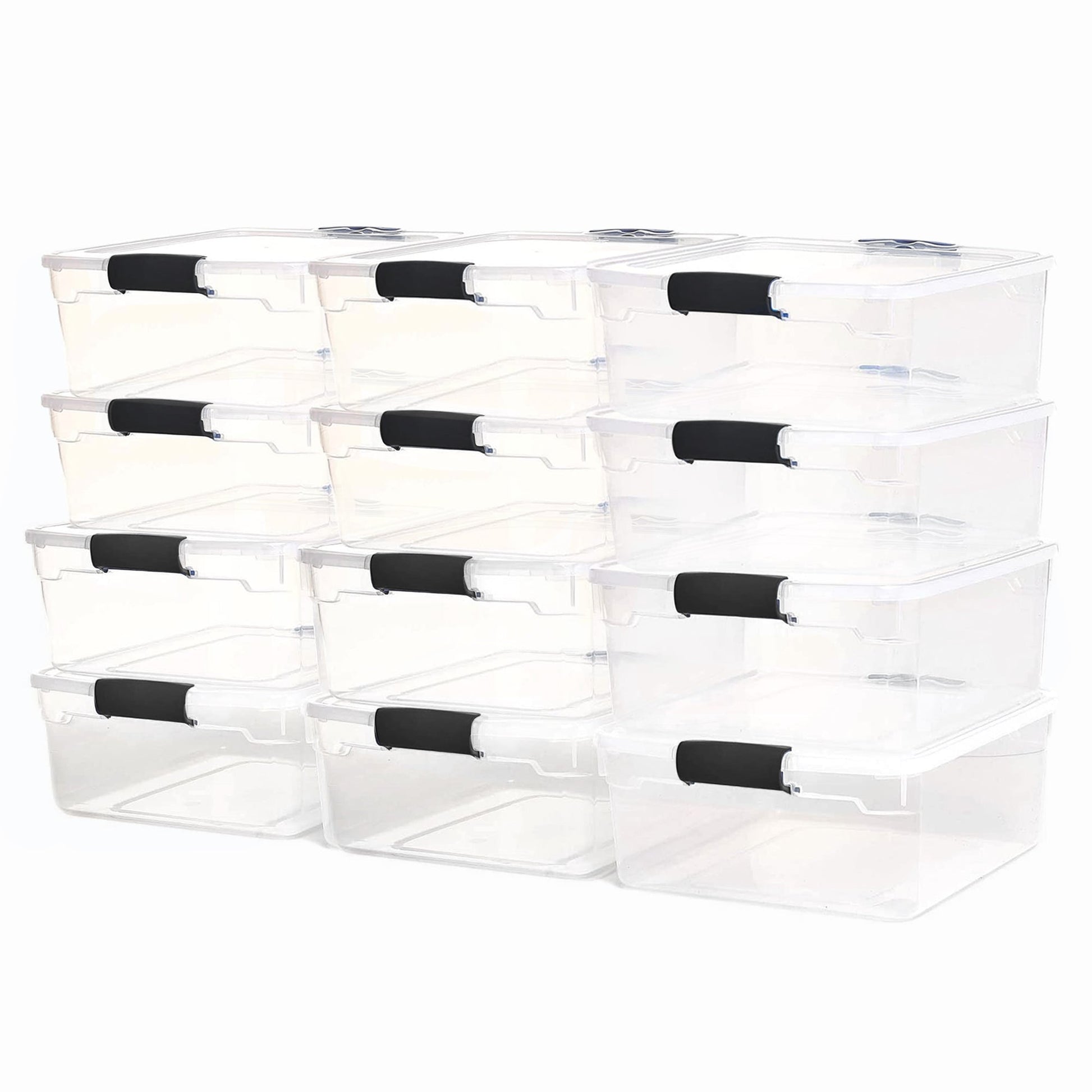 - Set of (12) clear storage containers with a 15.5-quart capacity each, allowing you to organize items efficiently