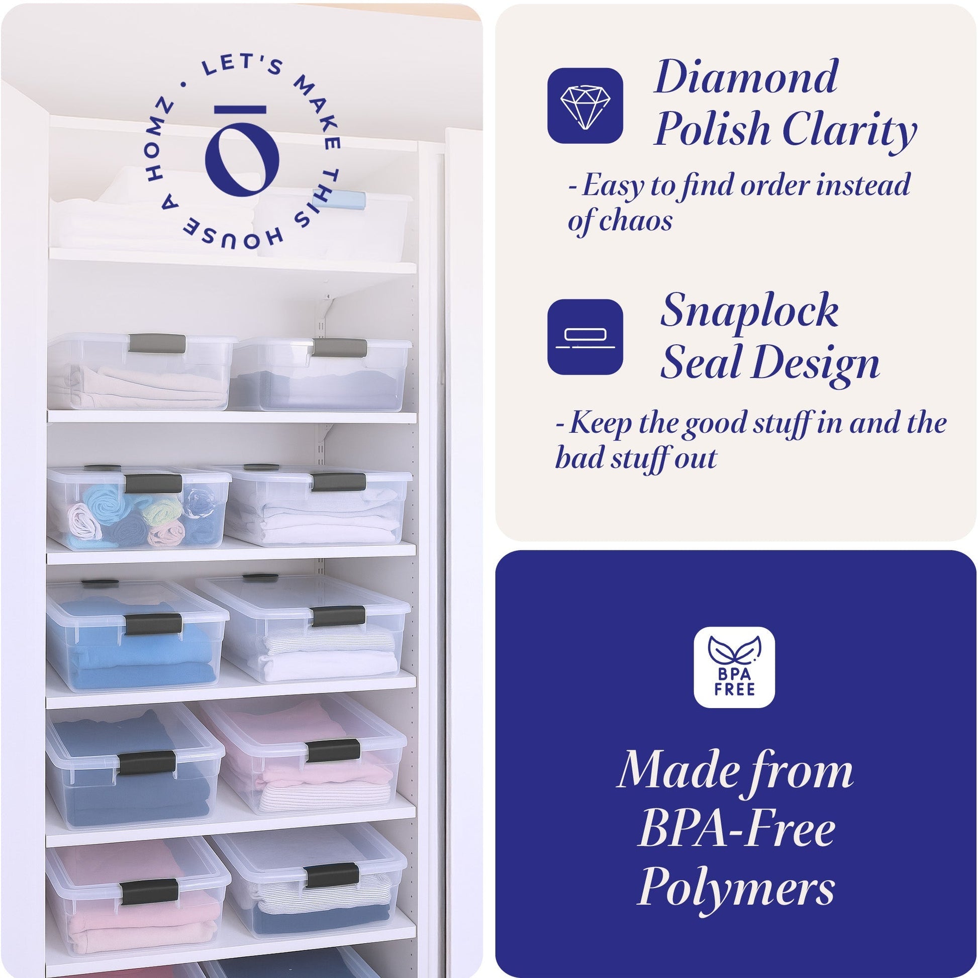 Declutter your home and enjoy getting organized with the 16-pack of Stackable Storage Containers from Homz. These storage bins redefine how you manage space, ensuring clutter is a thing of the past.