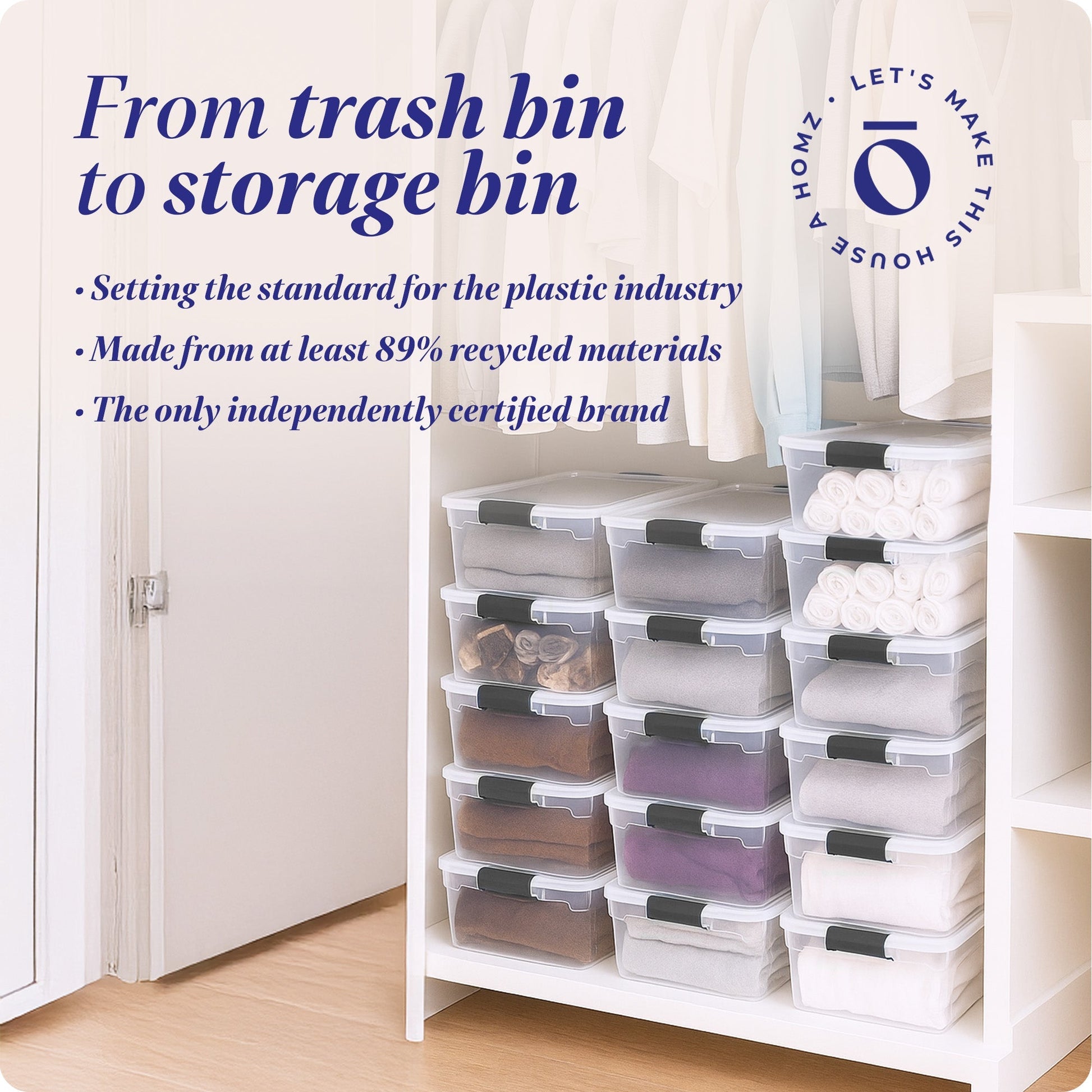 Homz 15.5 Qt Plastic Stackable Storage Container w/Lid, Gray Latch (16 Pack)
