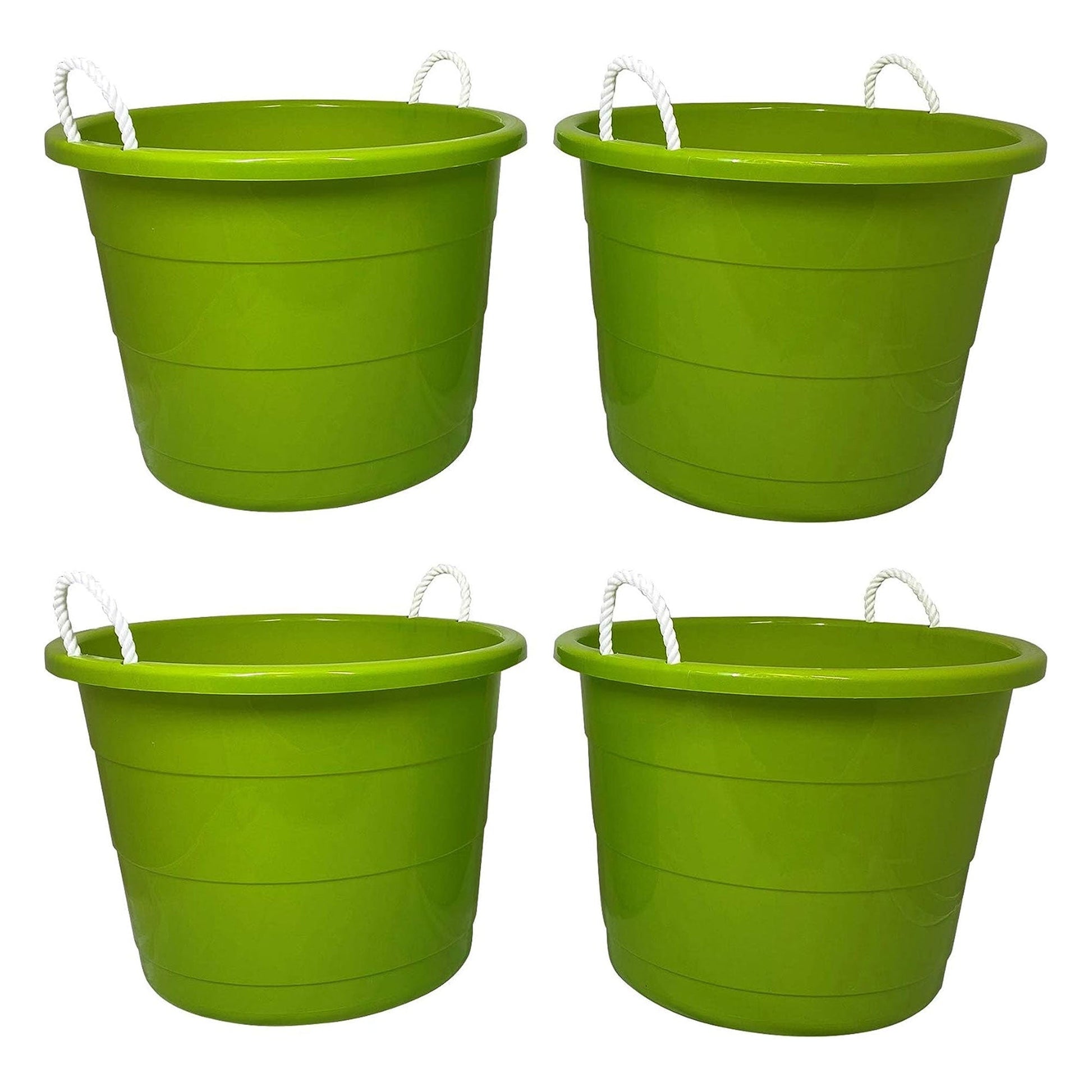 Homz 17 Gallon Indoor Outdoor Storage Bucket w/Rope Handles, Bold Lime (4 Pack)