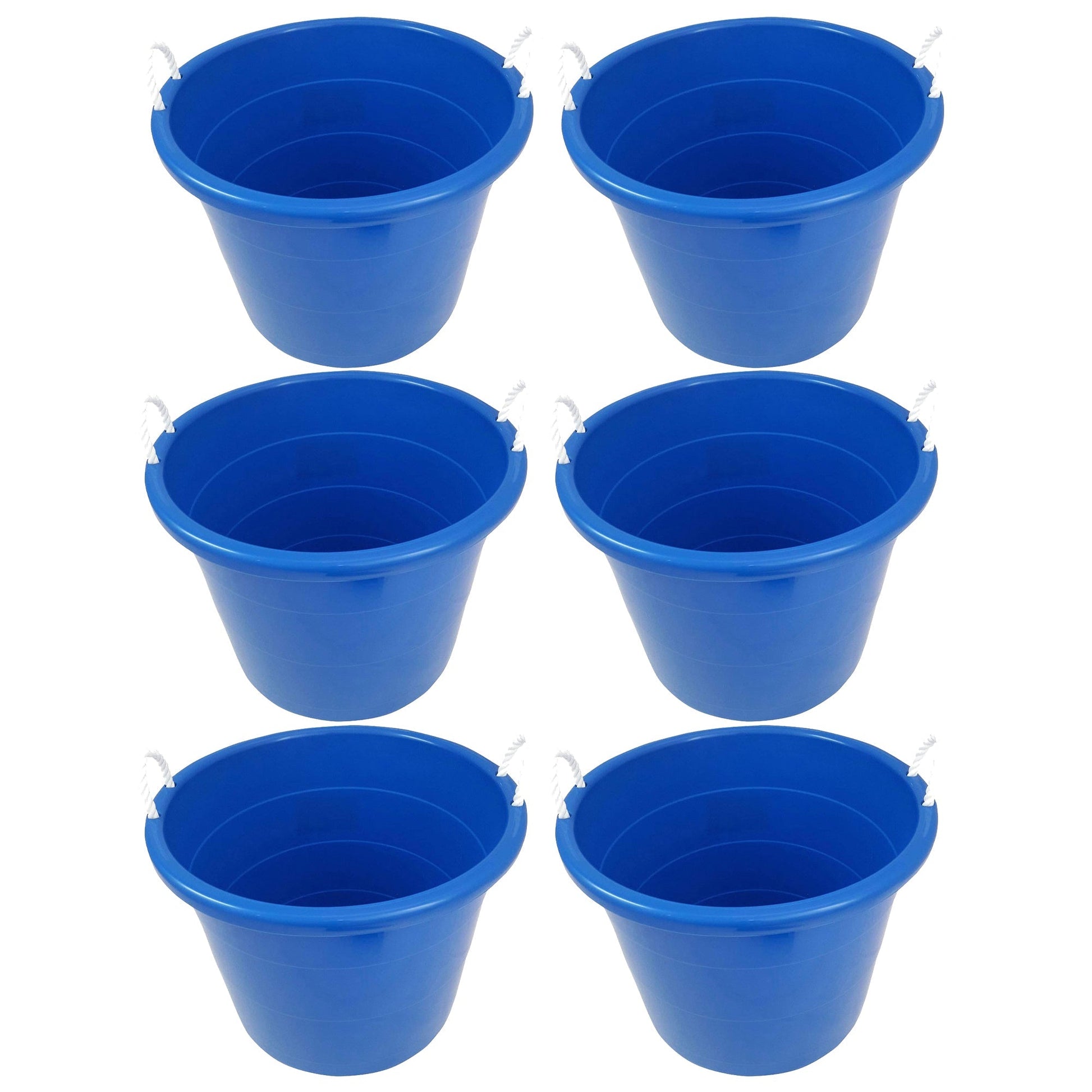 Made of sturdy plastic materials, these open storage buckets are ideal to use both indoors and outdoors. With rugged nylon rope handles on both sides, you’re able to conveniently transport each tub from place to place with ease. Built with an open top, these tubs can support up to 50 pounds of small or large equipment pieces.