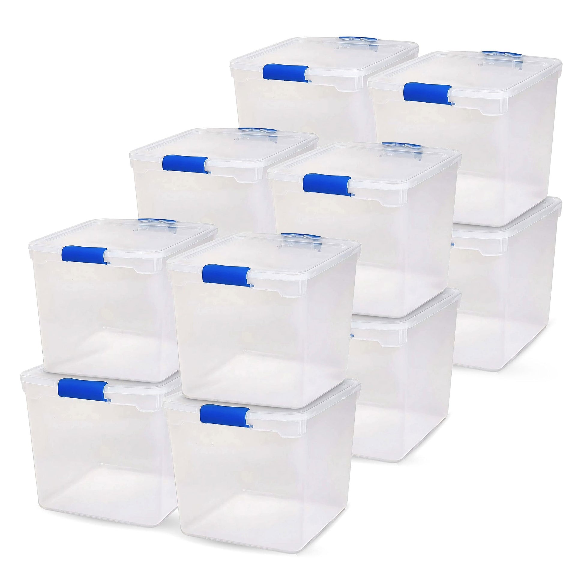 - Set of 12, 31-quart containers offers the perfect storage solution for storing holiday decor, linens, clothes, craft supplies, toys, and other household items