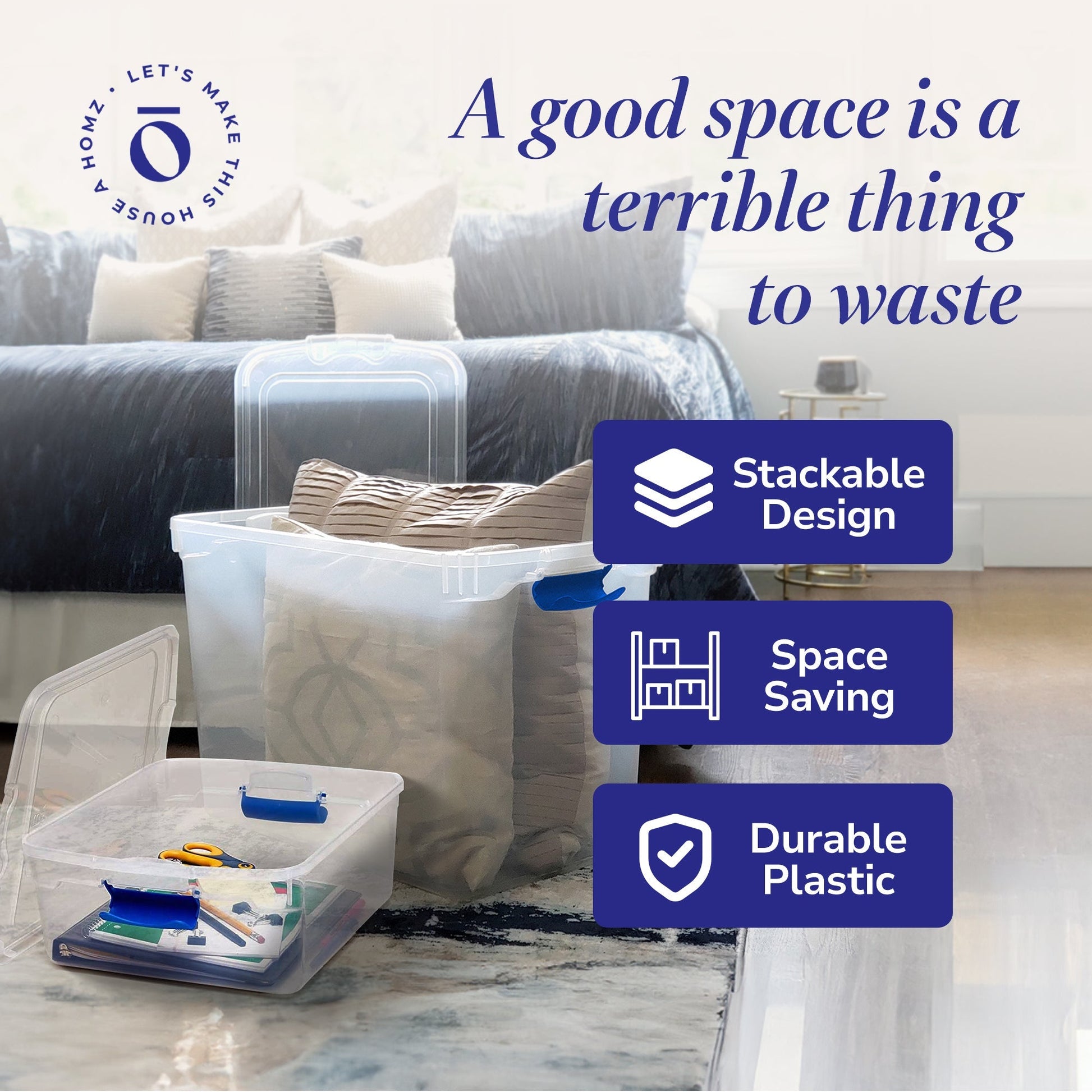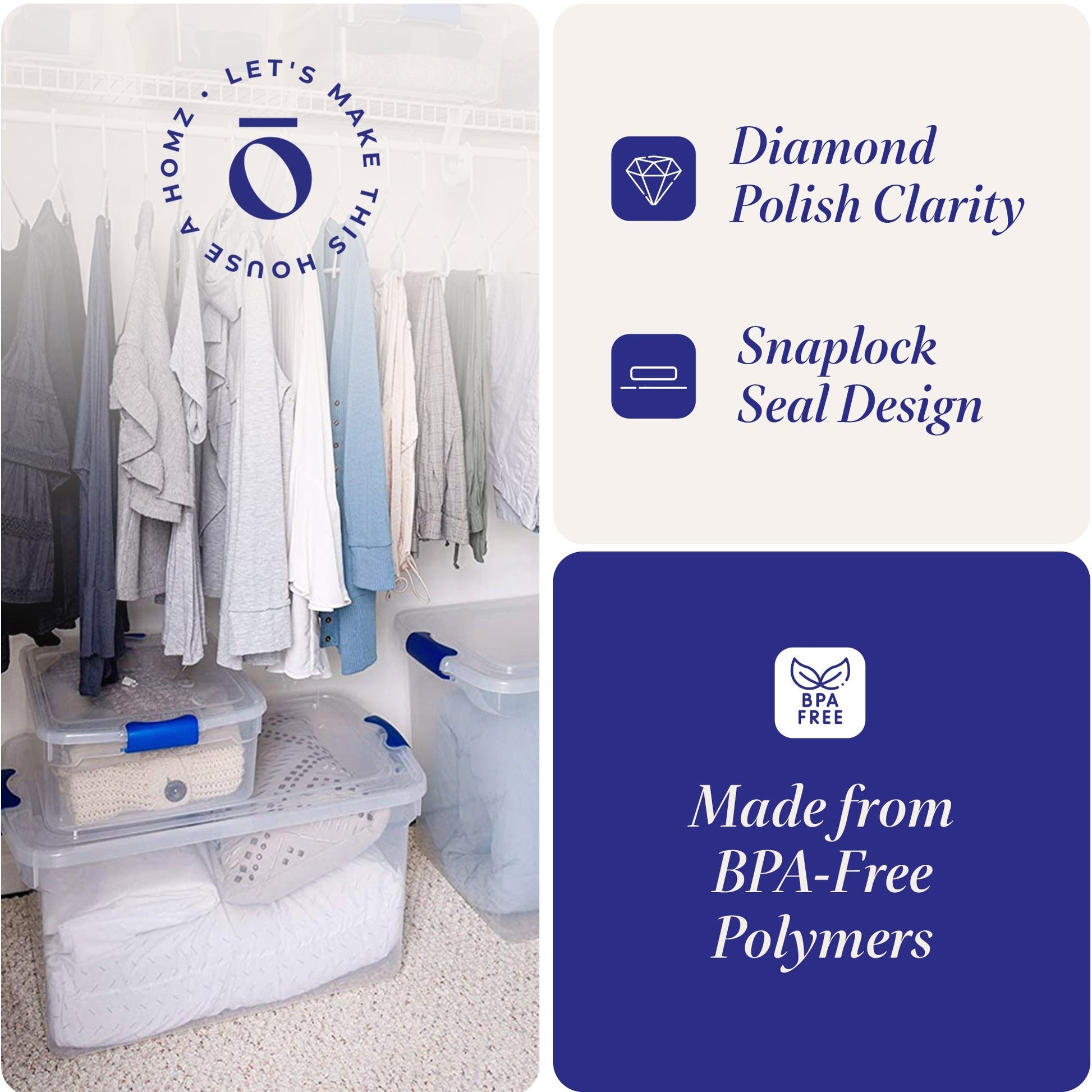 Get organized with this Homz 31 Quart Clear Plastic Stackable Storage Containers, 4 Pack & 15.5 Quart Clear Plastic Stackable Storage Containers, 4 Pack.