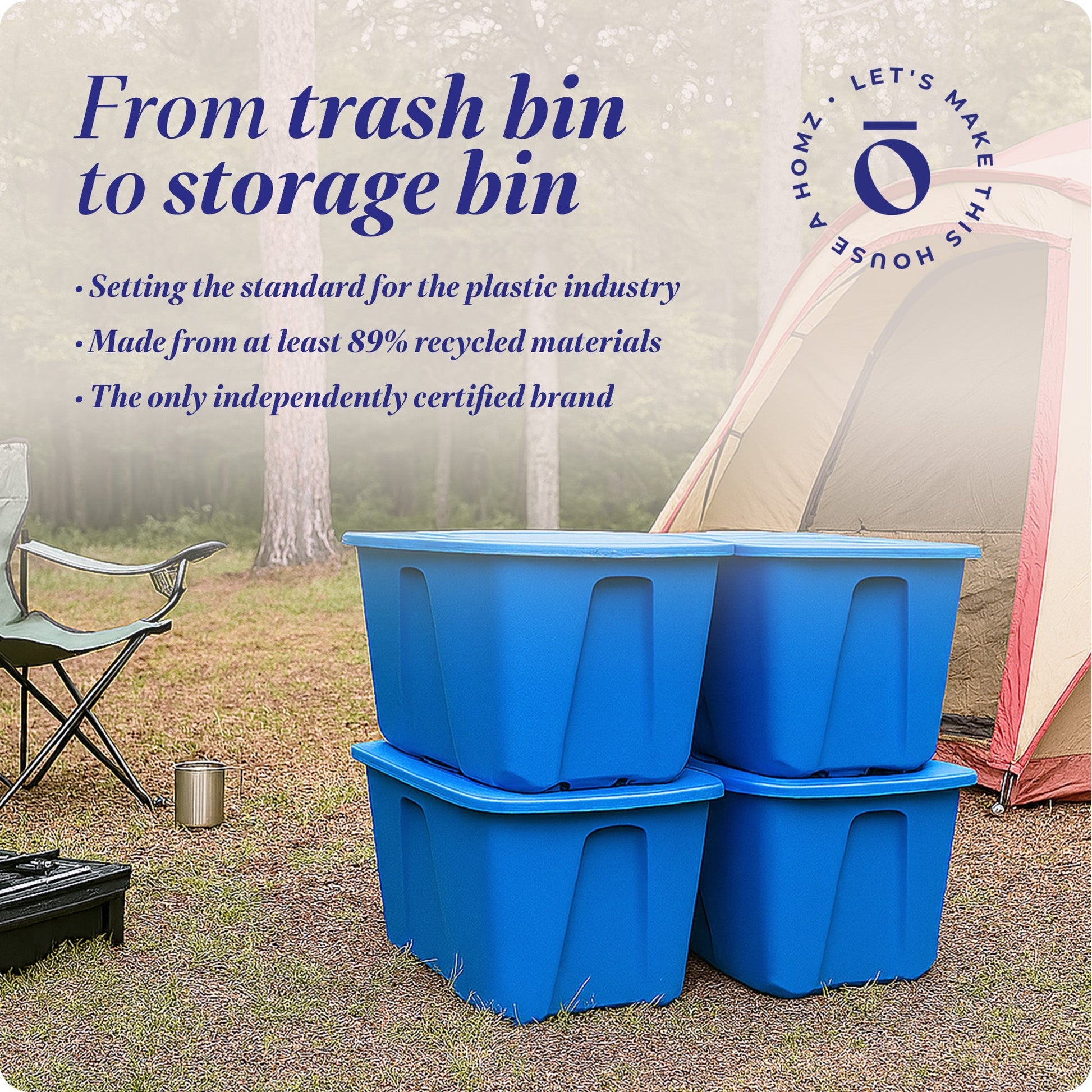 Homz 32 Gallon Standard Plastic Storage Container with Secure Lid, Blue, 4 Pack