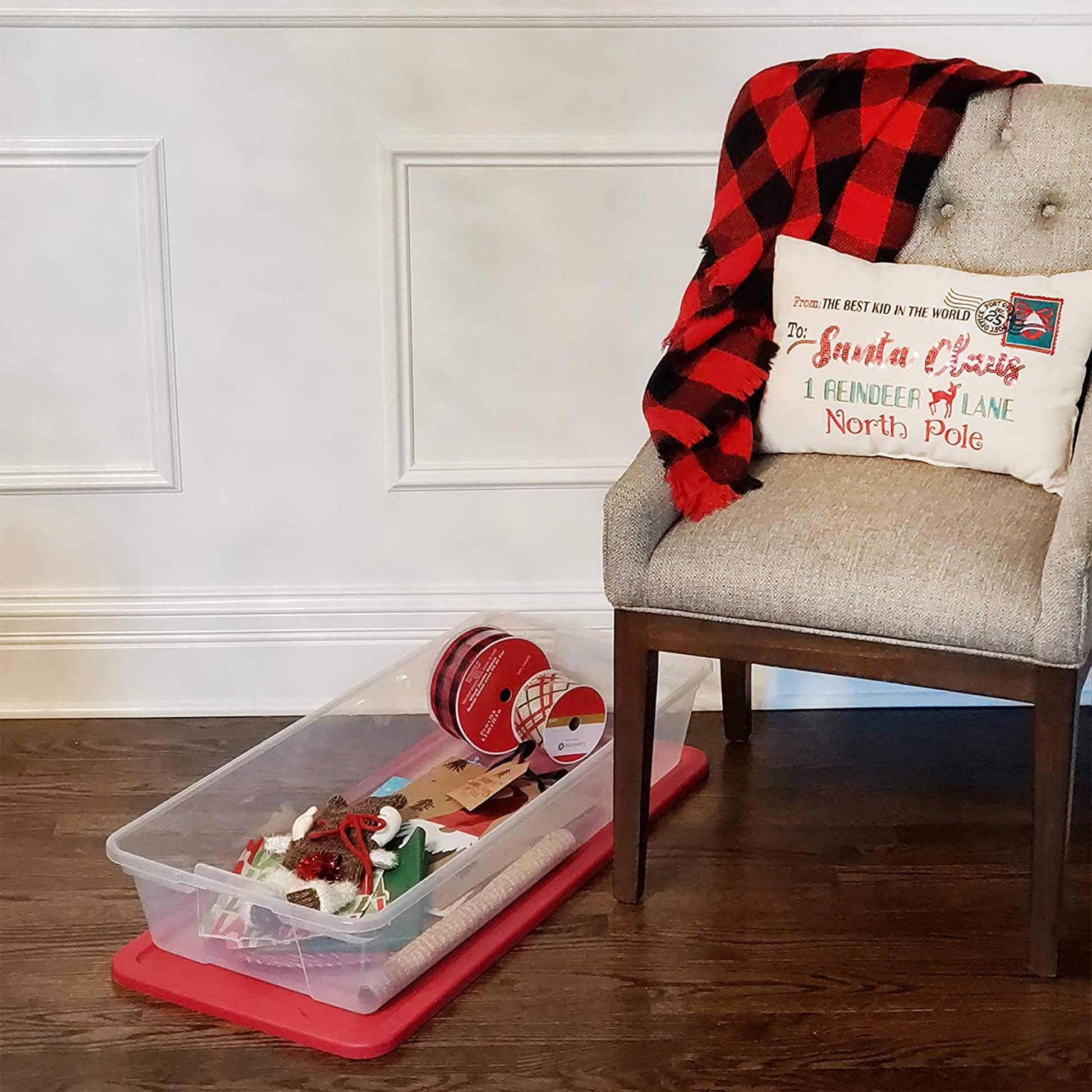Homz 41Qt Clear Plastic Holiday Storage Container w/Red Snap Lock Lid (4 Pack)
