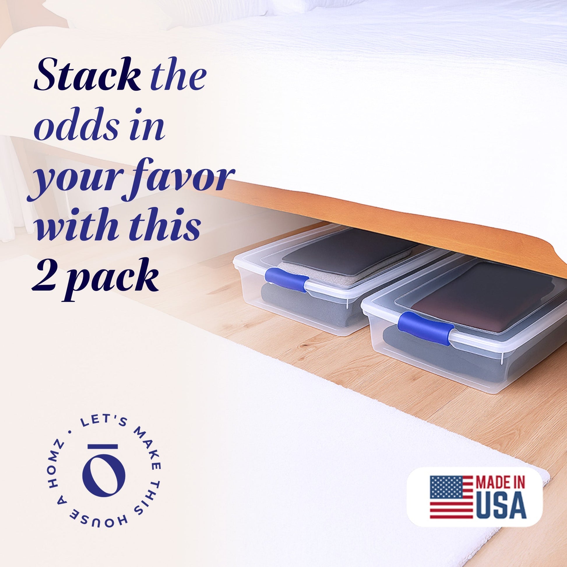 Homz 60 Quart Underbed Secure Latching Clear Plastic Storage Container, (2 Pack)