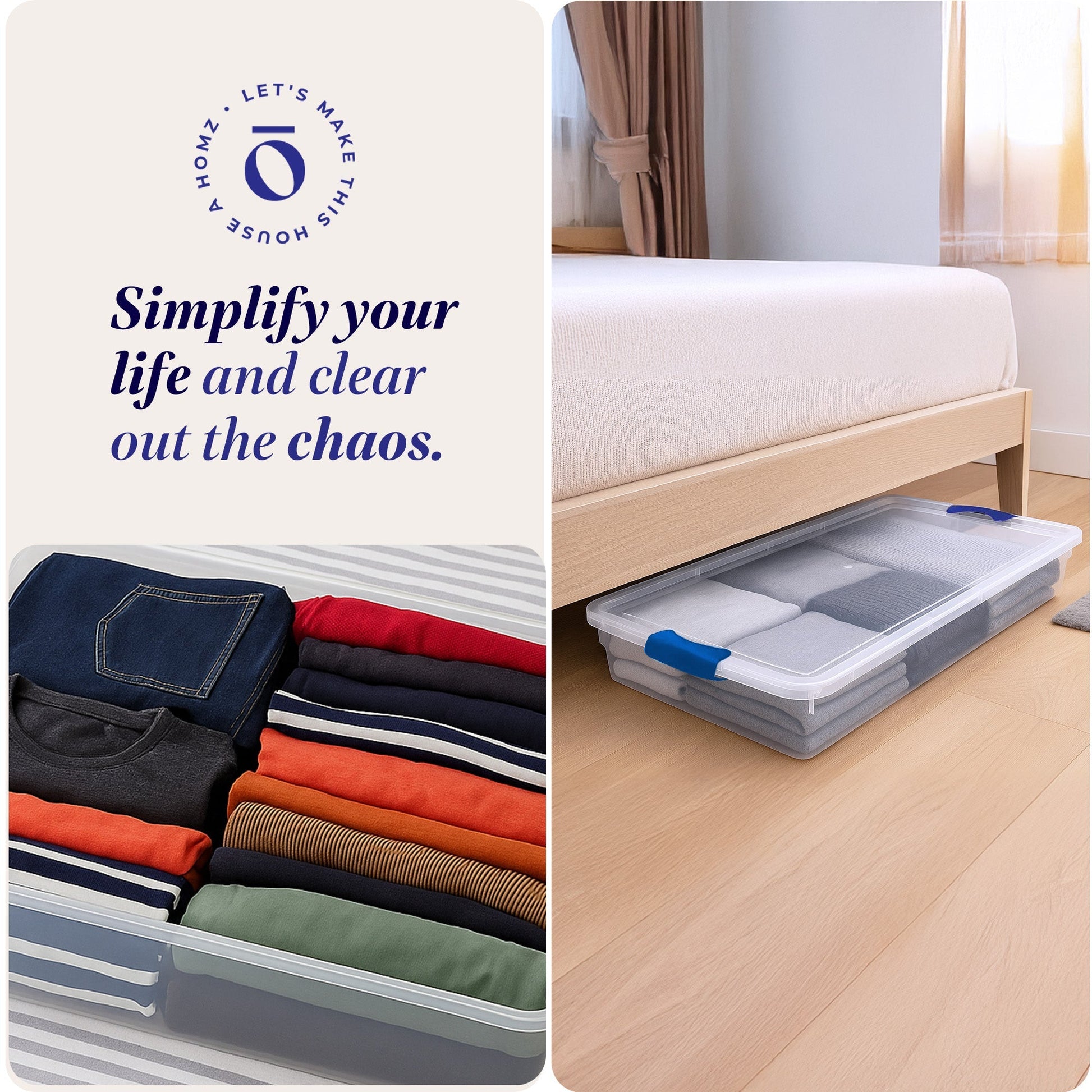 Get the most out of your space with the 2-pack of Homz 60-Quart Underbed Secure Latching Plastic Storage Containers, the perfect solution for protecting holiday decorations, out-of-season clothing, and more from dust and debris.