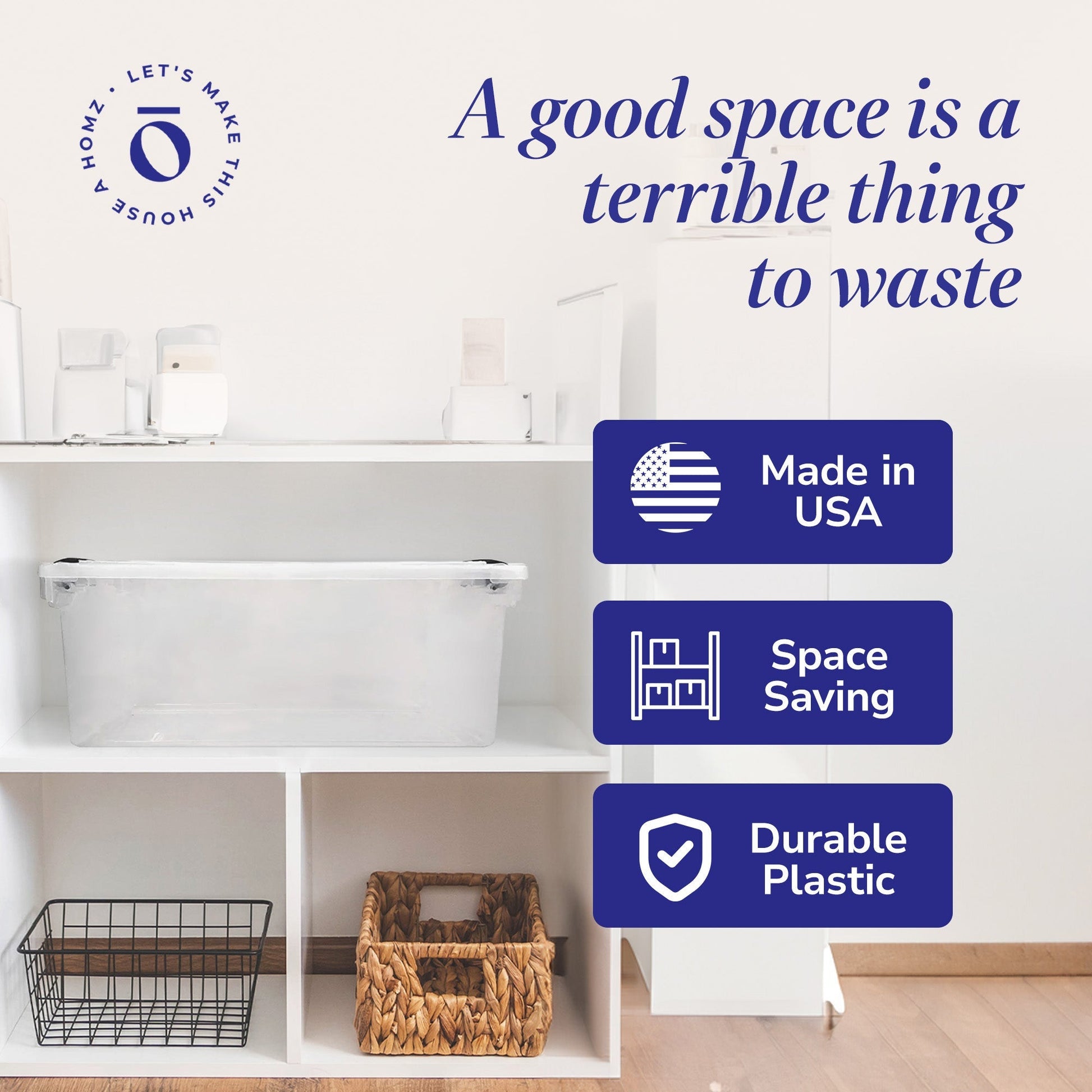 Homz 64Qt Stackable Plastic Storage Bin Container Box w/Latch Lid, Clear(2 Pack)