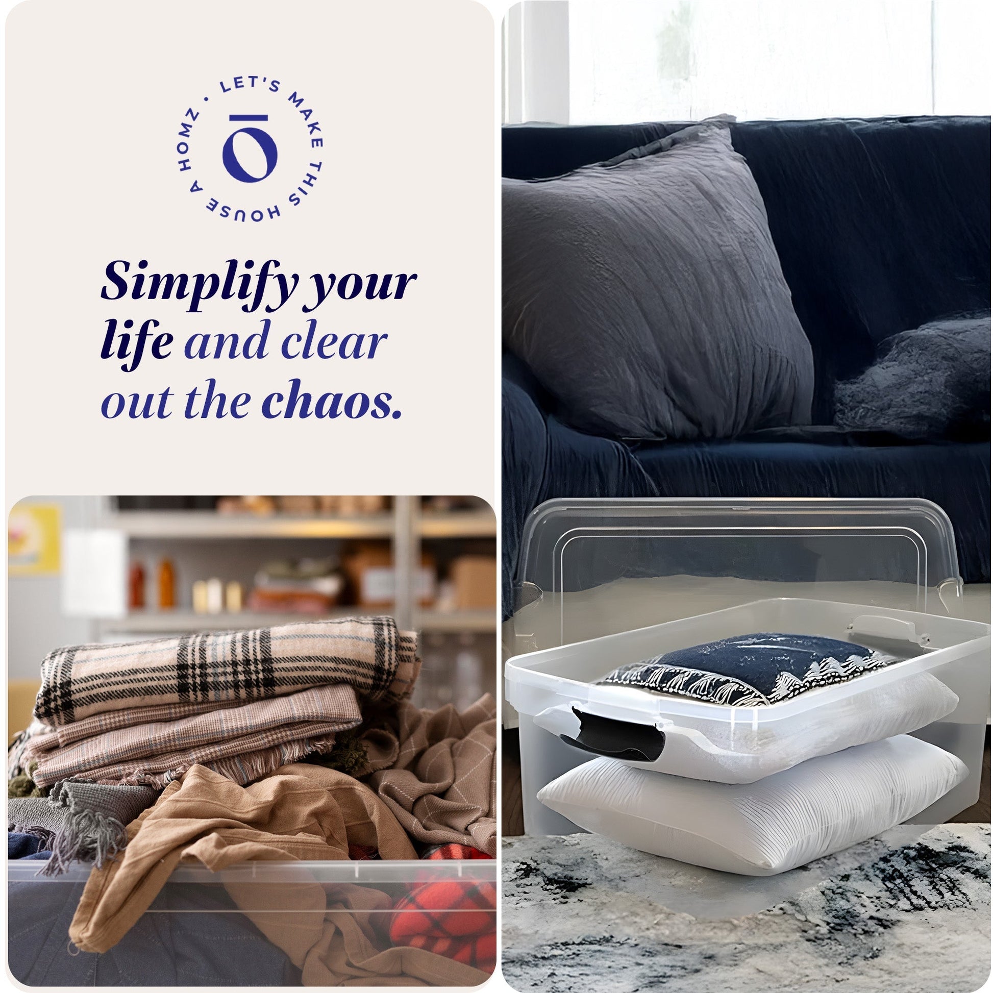 Take your storage organization to the next level with the 2-Pack of 64-Quart Large Clear Plastic Storage Container Bins from Homz.