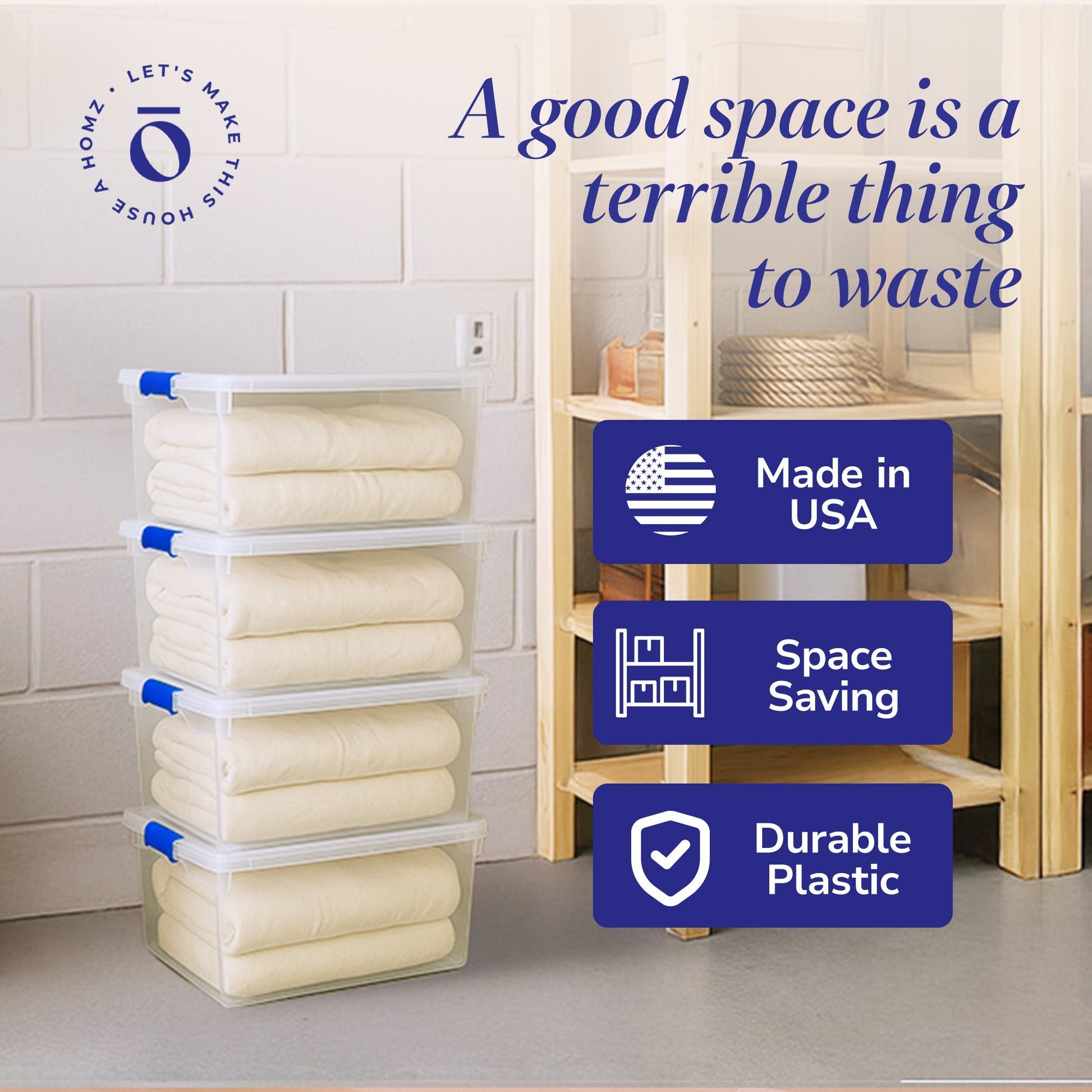 Homz 66-Quart Clear Plastic Stackable Storage Containers w/ Latch Lid, 4 Pack