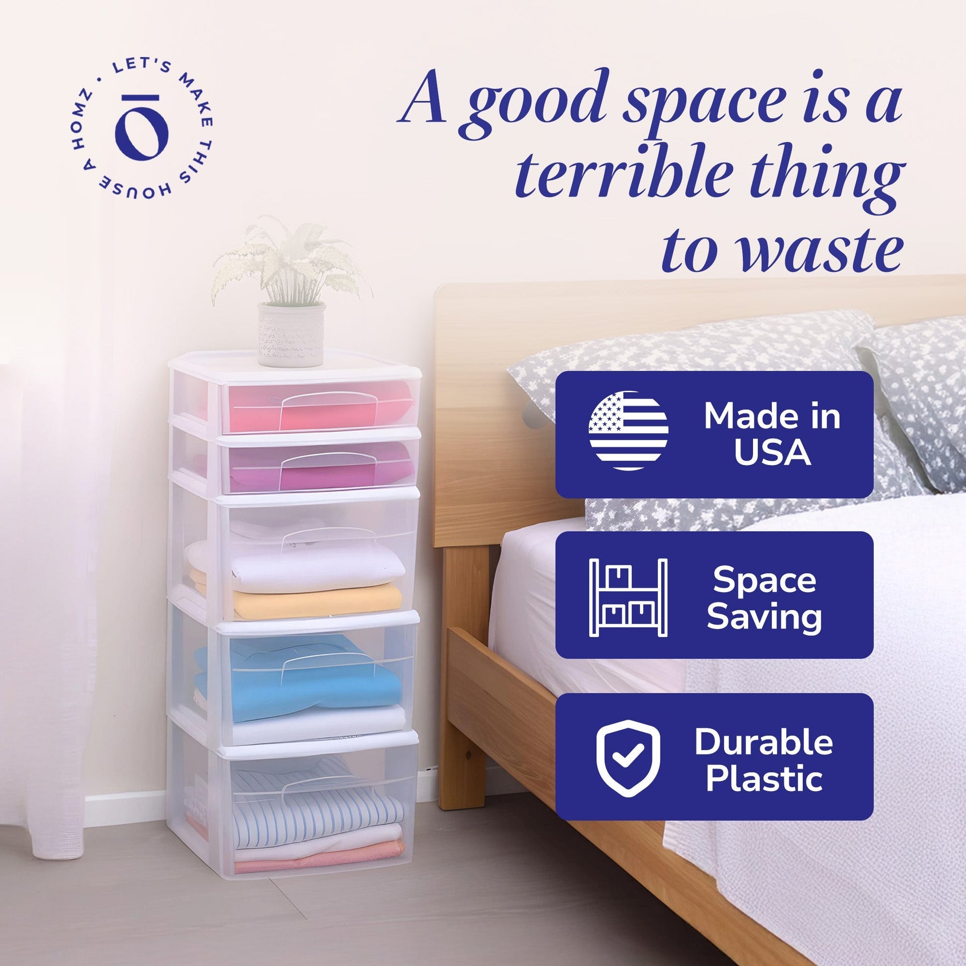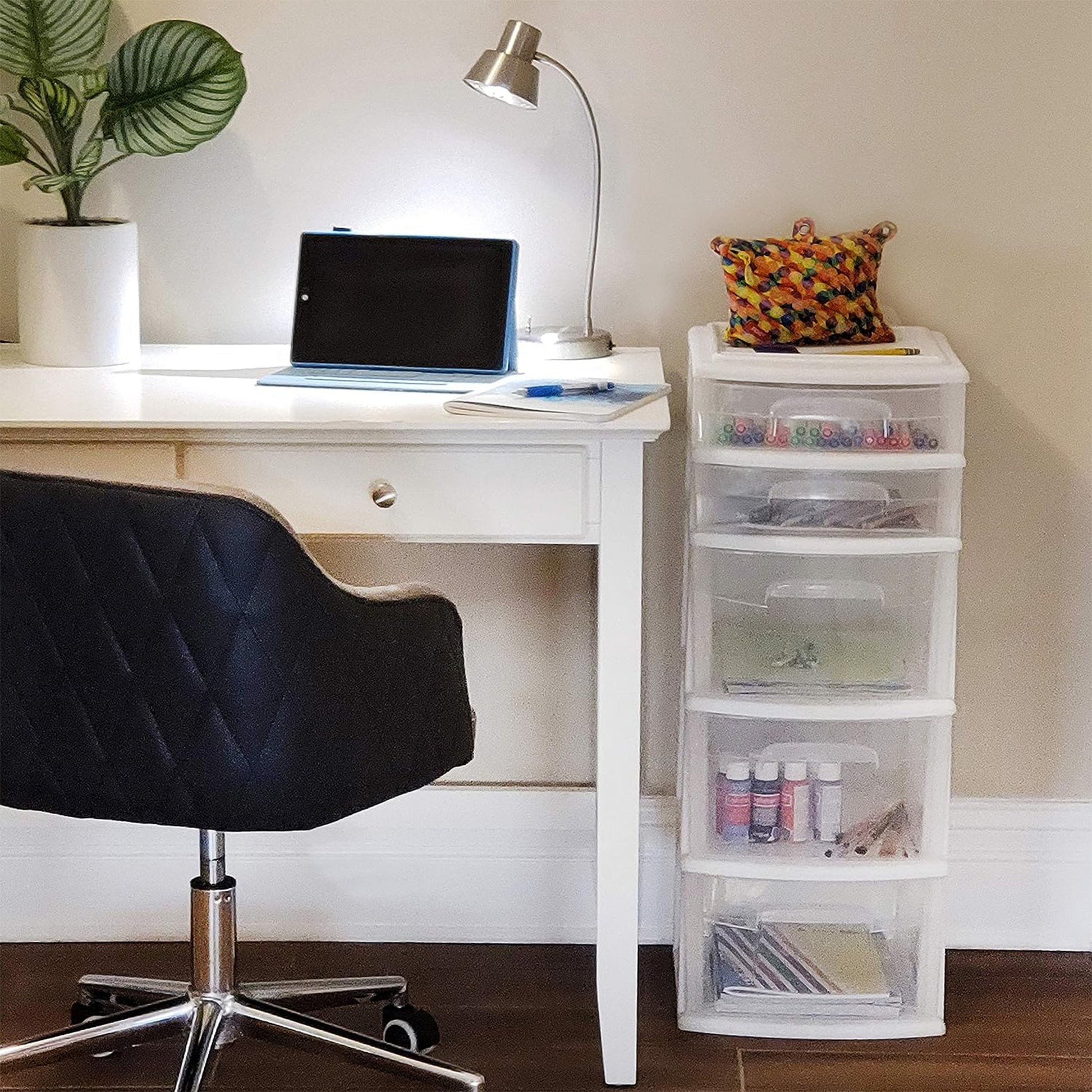Homz Clear Plastic 5 Drawer Home Storage Container Tower, White Frame (2 Pack)