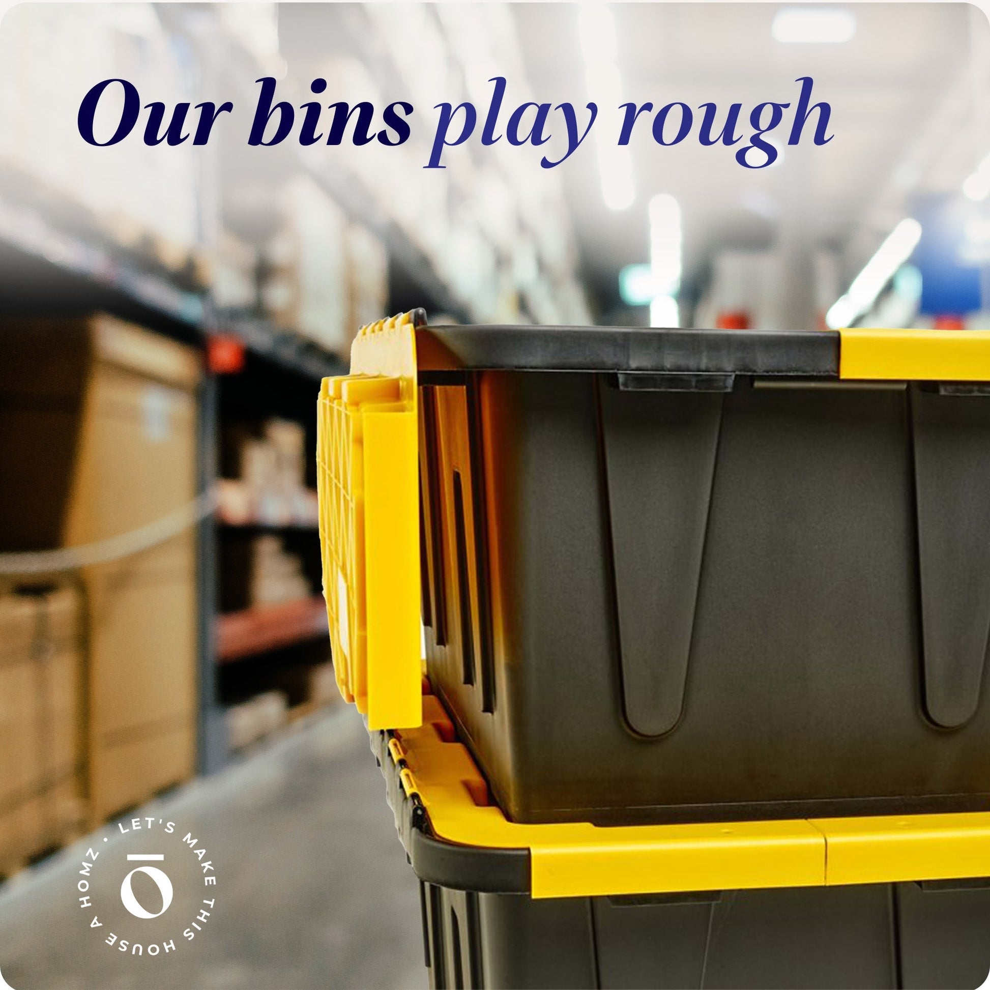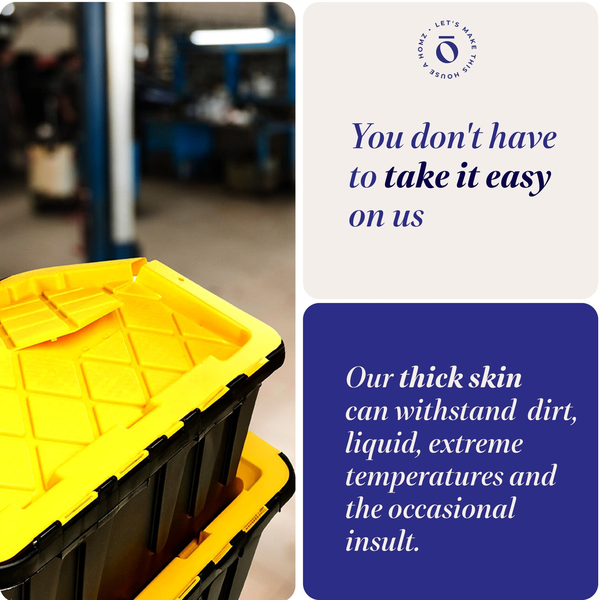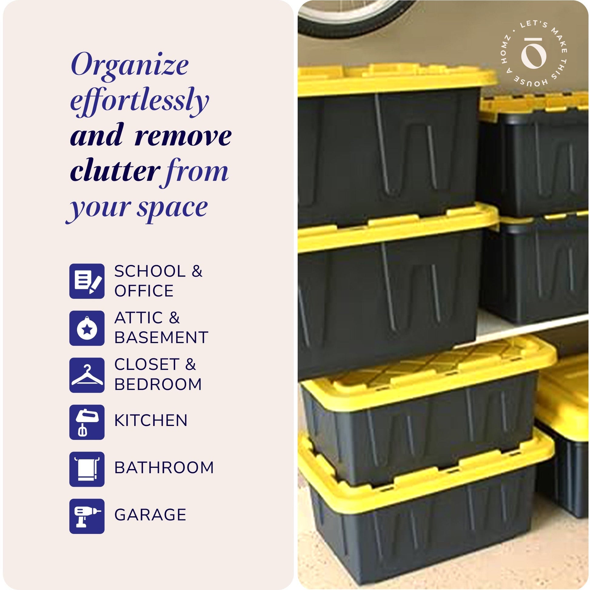 Homz Durbilt 15 Gal Storage Containers Tough Flip Lid Bins, 6 Pack, Black/Yellow