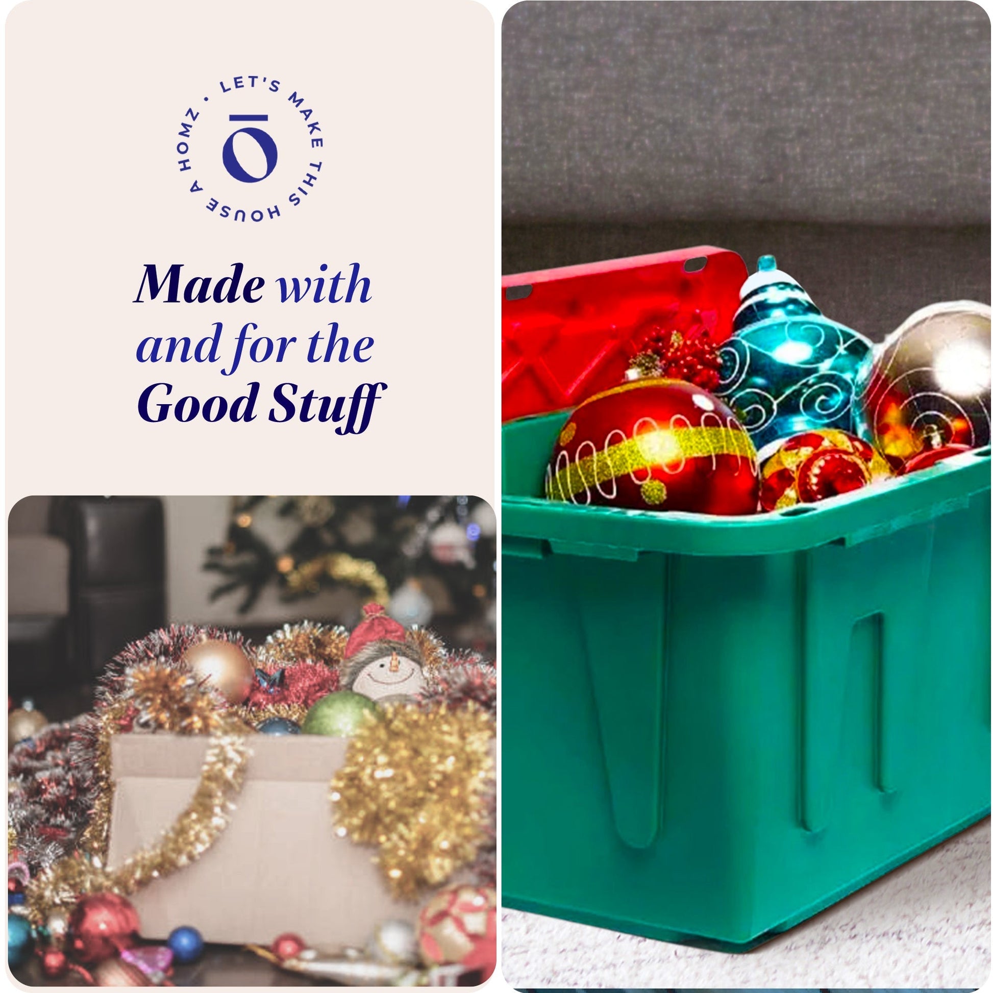 HOMZ Durable 27 Gallon Heavy Duty Holiday Storage Tote, Green/Red, (4 Pack)