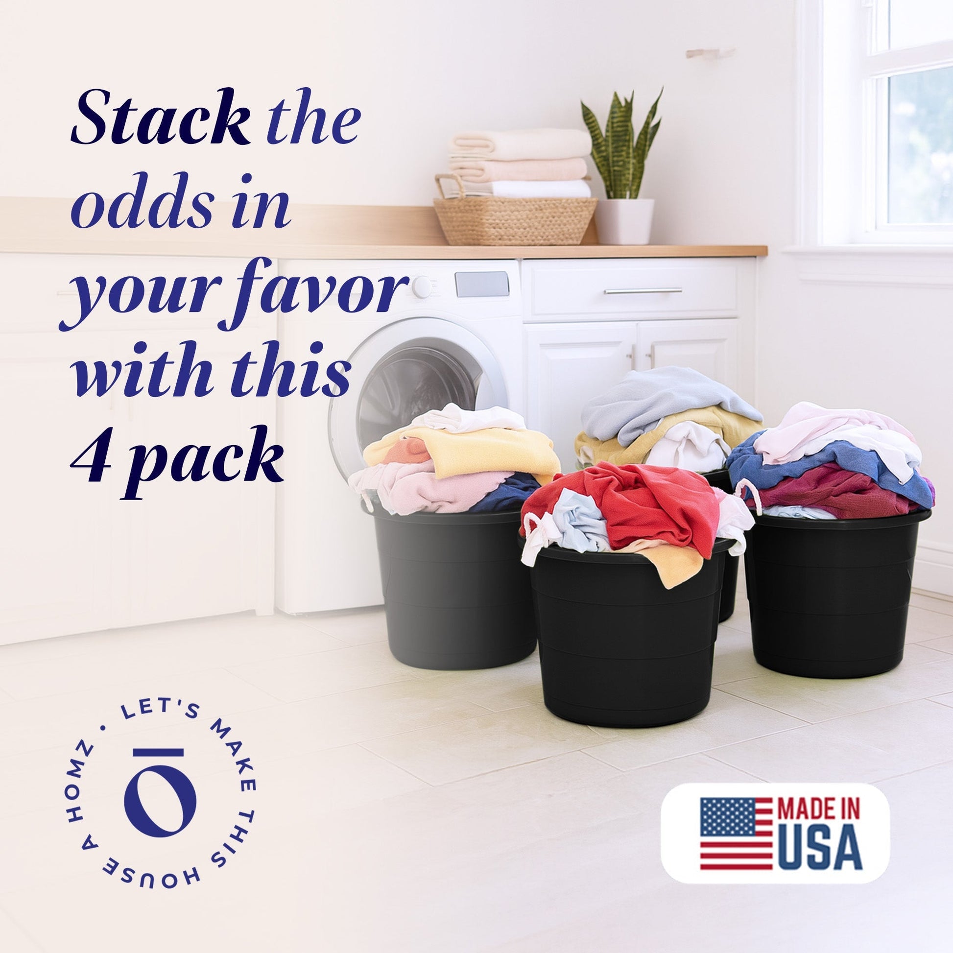 Keep items neatly stored anywhere inside or outside your home with the Homz 17-Gallon Plastic Utility Tub 4-Pack.