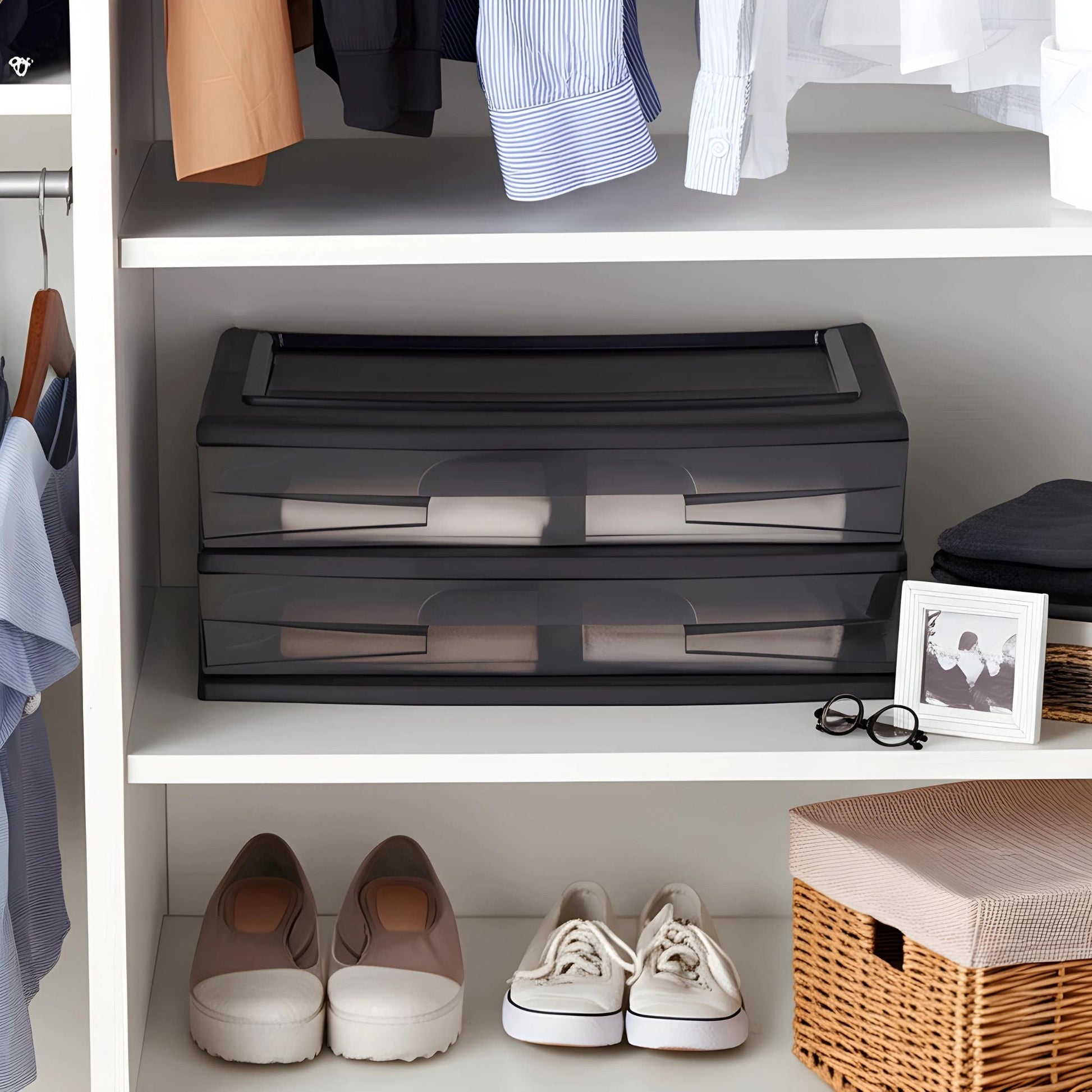 - Features 2 spacious, smoke-tinted plastic drawers that each remove to transport contents with ease