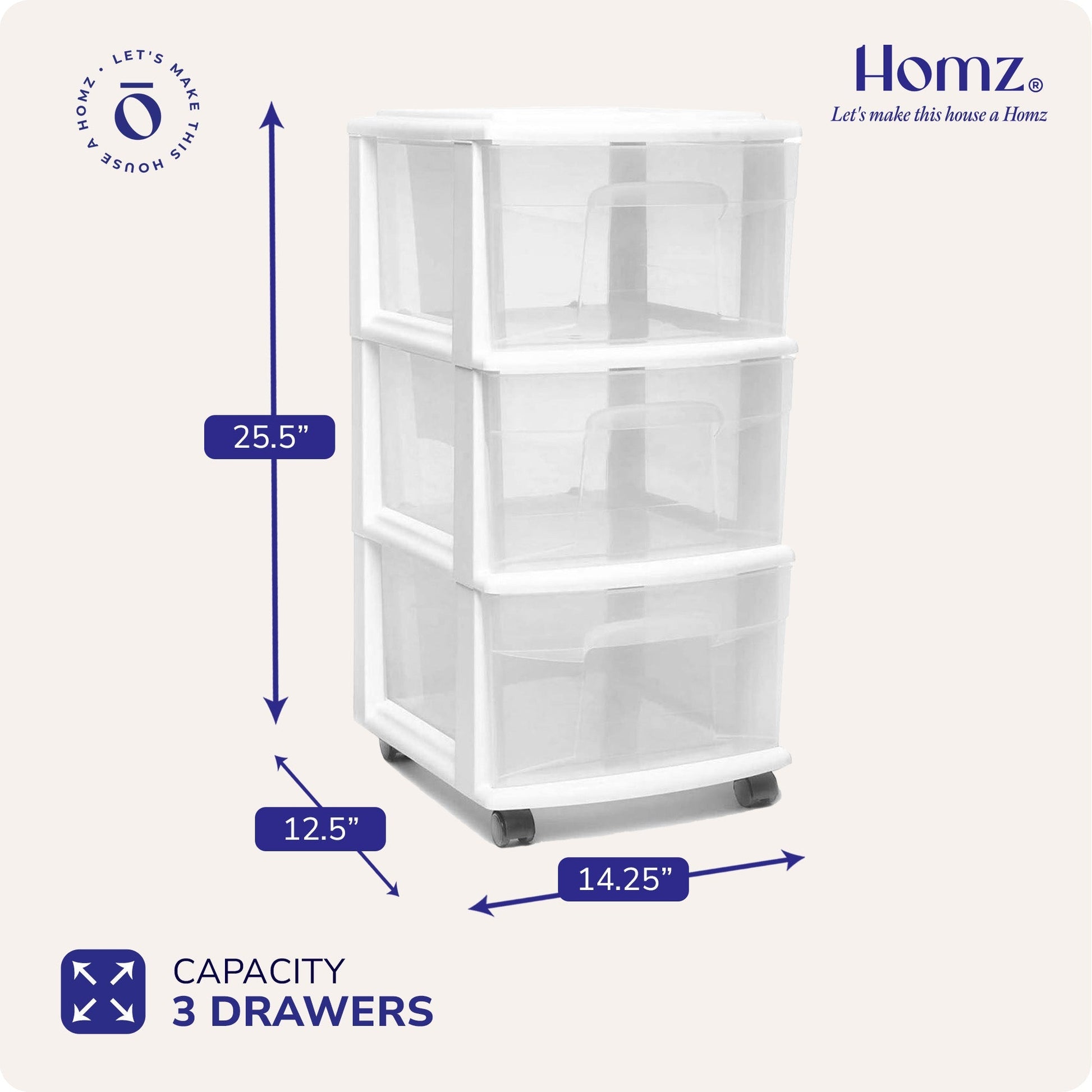 Homz Plastic 3 Drawer Medium Storage Container Tower, Clear Drawers/White Frame