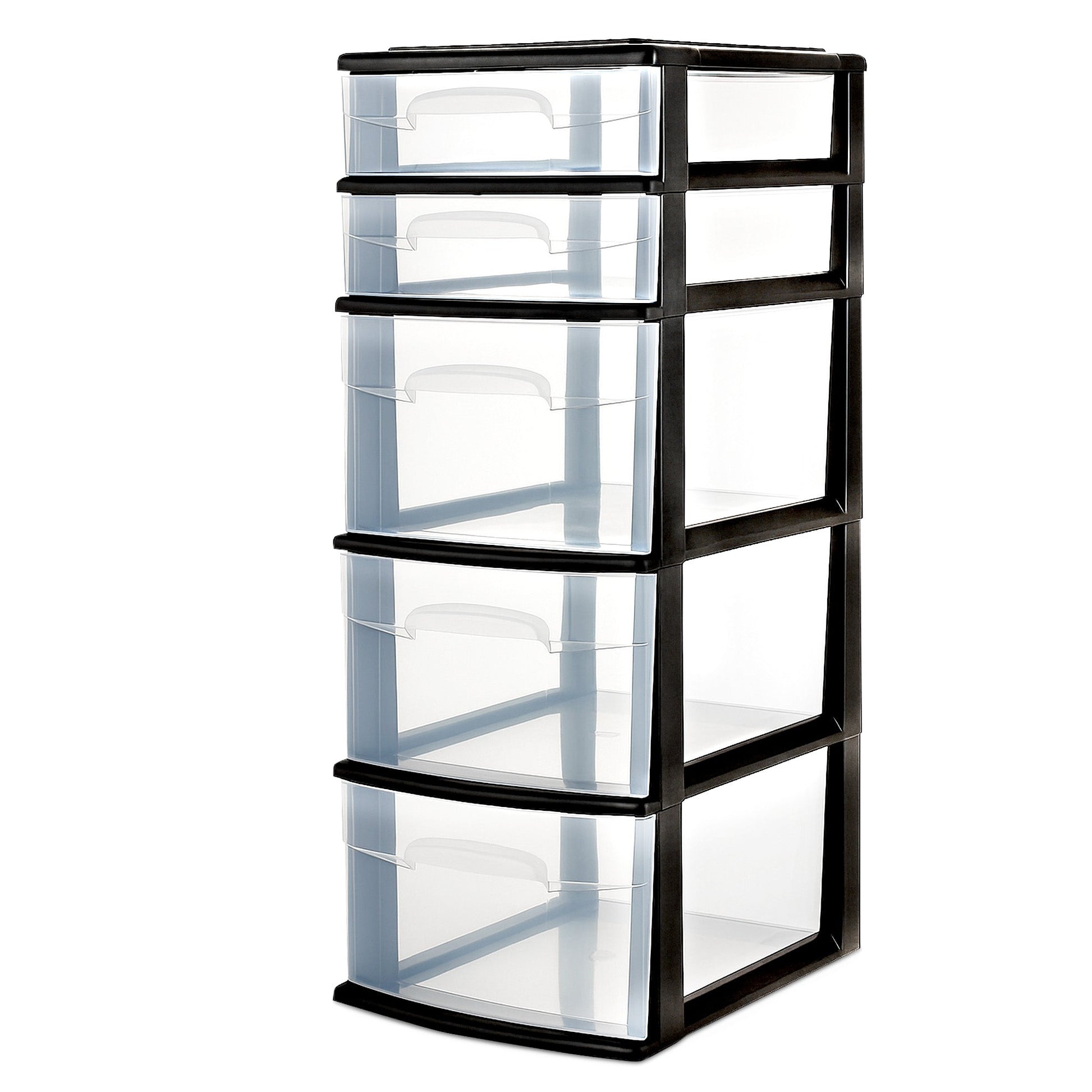 Homz Plastic 5 Drawer Home Storage Container TowerCloset Organizer, Black Frame