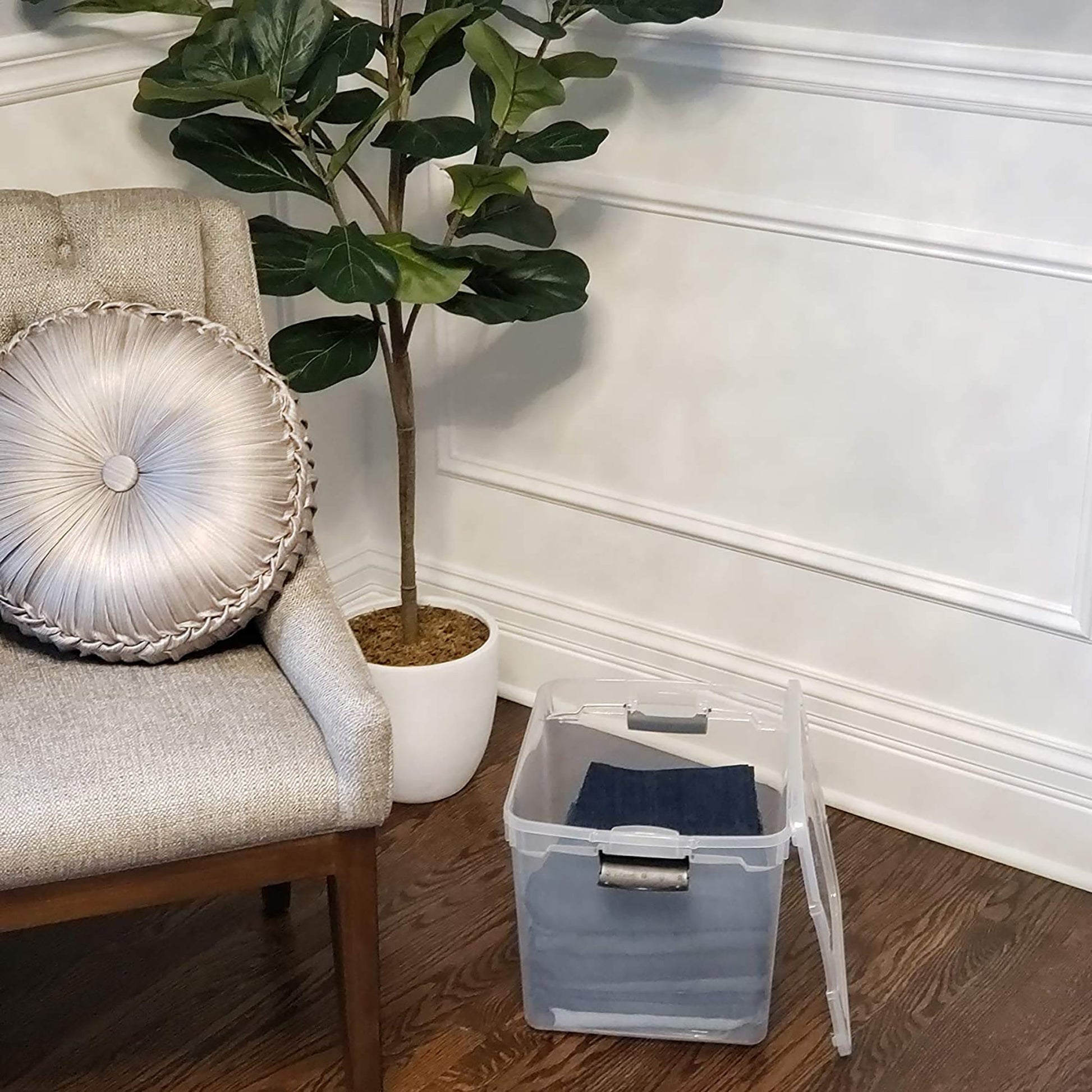 - Pack of (8) 31-quart storage bin ideal for clothing, office supplies, personal items, and more