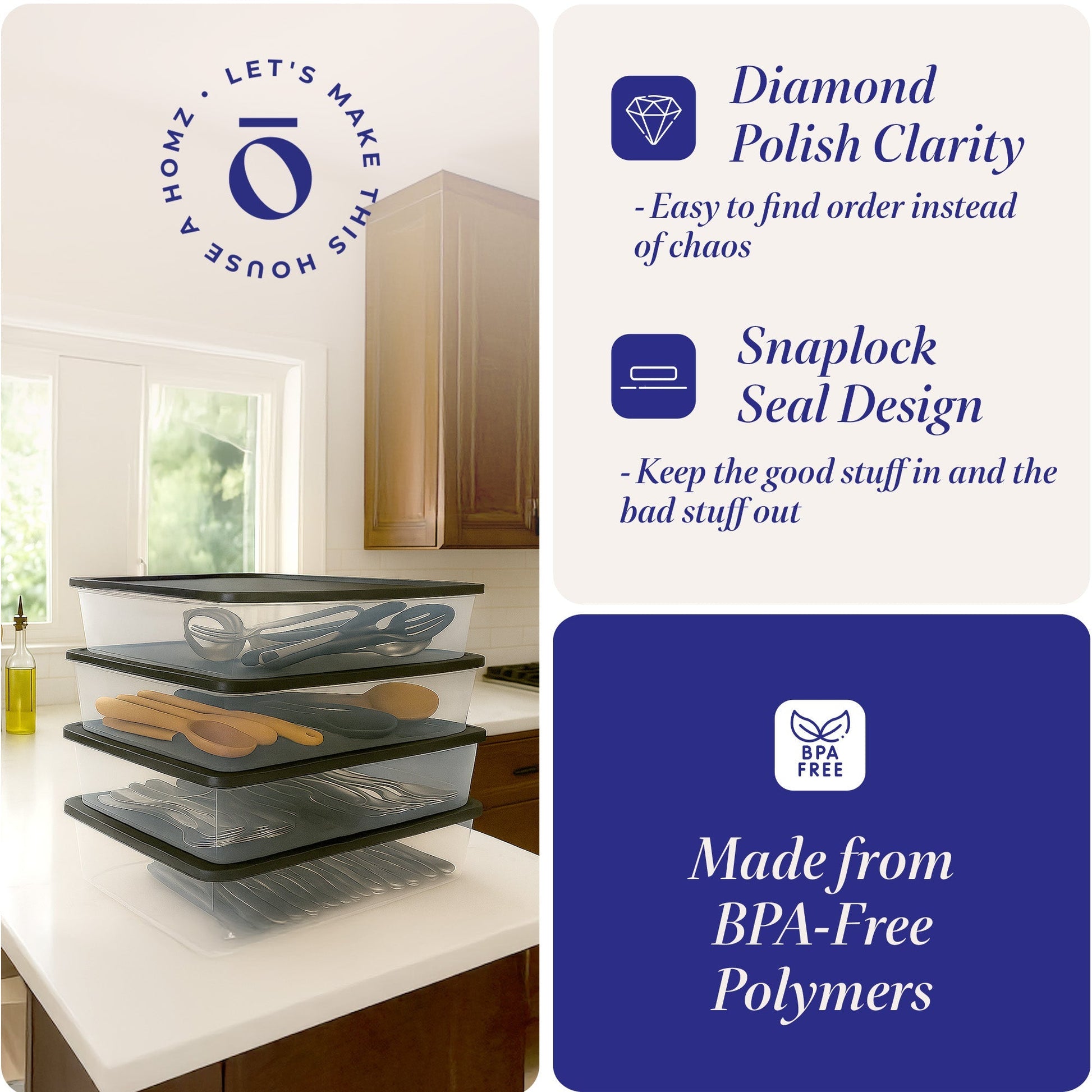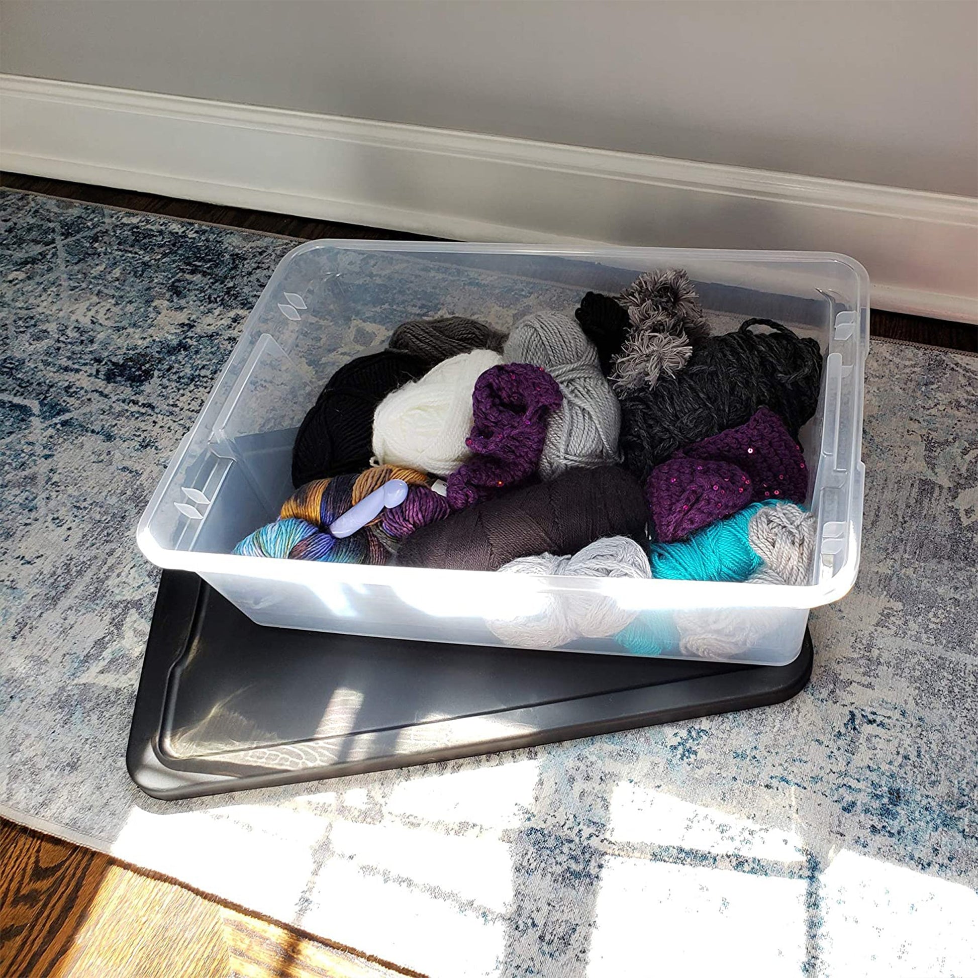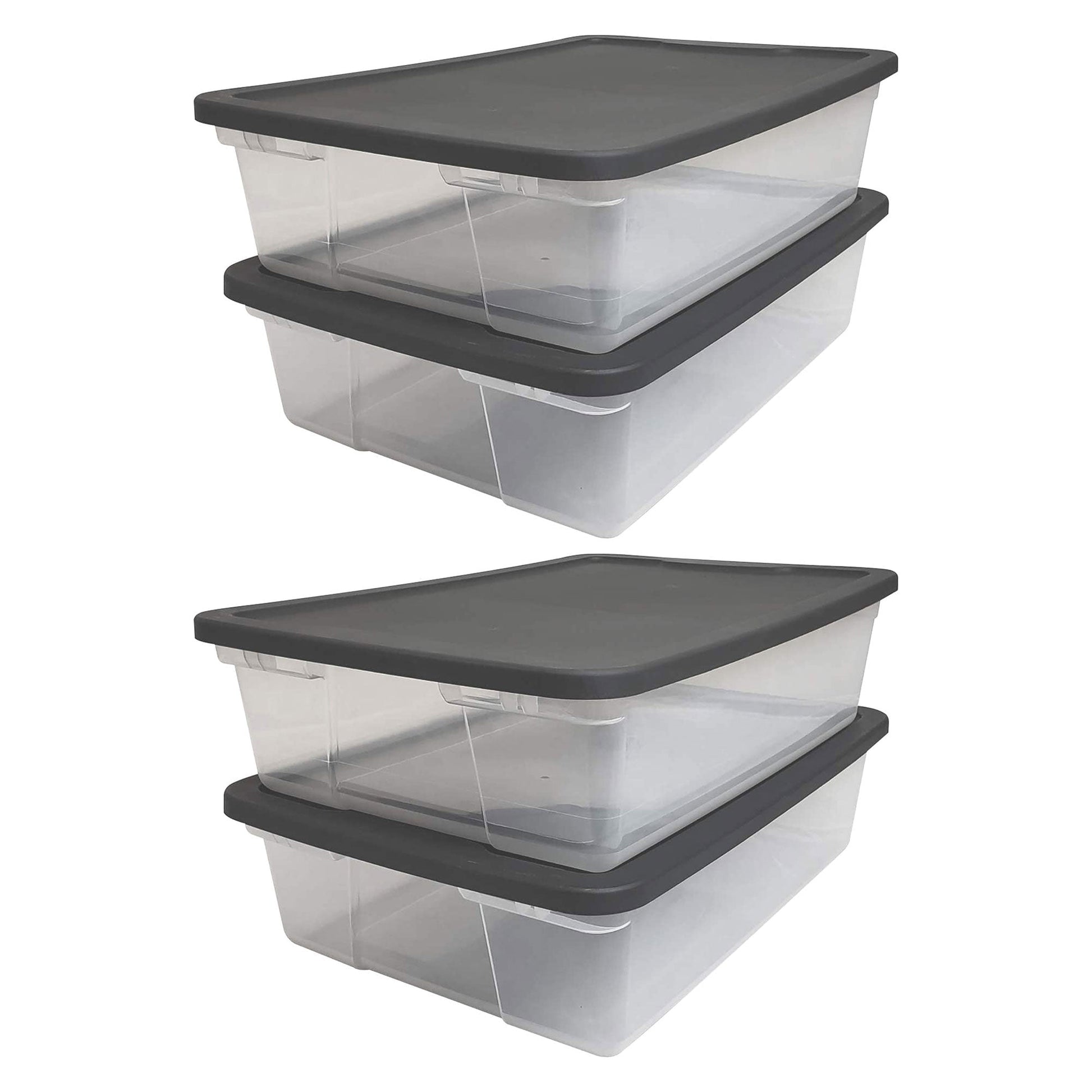 Tidy up the clutter underneath your bed and neatly store away your things with the 4-pack of 28-Quart Storage Containers from Homz. These under-bed clear storage containers are a great way to organize and provide additional storage space where you least expect it.